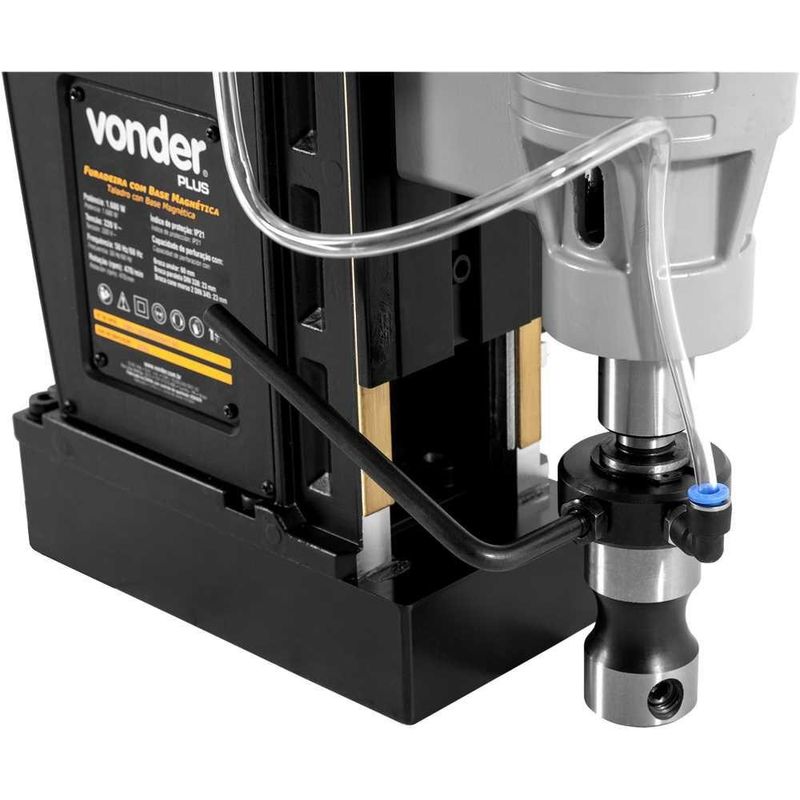 Código do Fornecedor: 6001168230Marca: VonderConteúdo da embalagem: 1 Furadeira Com Base Magnética 220V Fmv 1680 Vonder Plus Acompanha: 1 chave allen 2 mm, 1 chave allen 6 mm, 1 cunha, 1 fusível de 0,75 A, 1 cinta de segurança, 3 hastes (manivela), mandril encaixe Weldon com haste cone morse 2 (mandril e haste são peça única).Robusta e de fácil operação. Possui encaixe cone morse 2, mandril encaixe Weldon com haste cone morse 2 (mandril e haste são peça única). O mandril conta com conector rápido para mangueira do reservatório de fluido de corte e válvula de liberação do fluido (funciona apenas com o pino guia instalado na broca). Conta ainda com 1 nível bolha na base magnética.Uso industrial. Indicada para furações em chapas e vigas de metal. Espessura mínima da chapa para fixação da base magnética: 10 mm. Detalhes TécnicosModelo: FMV 1680Potência: 1.680 WForça de atração da base magnética: 15.800 NTipo do mandril da furadeira: Encaixe Weldon com haste cone morse 2 (Mandril e Haste são peça única)Sistema de reversão: NãoTipo de velocidade: FixaRotação (rpm): 470/minCurso máximo de perfuração: 170,0 mmCapacidade máxima de perfuração: 60,0 mmCapacidade de perfuração com broca anular: 60,0 mmCapacidade de perfuração com broca convencional: Broca DIN 338 e DIN 345: 23 mmTensão (V): 220 V~Frequência: 50 Hz/60 HzSegue norma: IEC 62841 - 1Dimensões da base: C: 220 mm / L: 130 mm / A: 45 mmÍndice de proteção (IP): IP21Massa aproximada (peso): 15,2 kgGarantia legal: 90 dias + Garantia contratual: 9 meses (Para locadoras, garantia única e exclusiva de 90 dias)