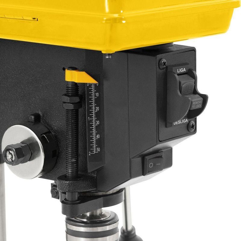 Furadeira De Bancada 1/2 Com Motor 1/3hp Monofásico 110VolConteúdo da embalagem1 Furadeira de bancada. Acompanha: motor, mandril, polia e correia k-26Aplicações e dicas de usoIndicada para perfurações em geral. Utilizada em carpintarias, serralherias, oficinas, entre outros.Destaques e diferenciaisEquipada com motor elétrico, cabo de ligação, chave liga/desliga com dispositivo de segurança, mesa giratória inclinável, lâmpada para iluminação da área do furo e alavanca de avanço com 3 braços. Conta com 5 velocidades.DETALHES TÉCNICOSPotência:1/3 hpCapacidade do mandril da furadeira:1/2 - 13 mmProfundidade de furação da furadeira:50 mmNúmero de velocidades da furadeira:5 velocidadesRotação da furadeira de bancada:620 rpm, 1100 rpm, 1720 rpm, 2340 rpm e 3100 rpmTipo de encaixe do eixo da furadeira:Cone B-16Tensão (V):110V~Peso aproximado:20 kgPrazo de garantia:1 ano Produto: Furadeira | Tensão Elétrica: 127 | Potência: 1/3