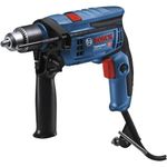 Furadeira De Impacto 1/2, 750 W, 220V~, Com Maleta, Gsb13re, 06012b80e1 Bosch 220V~ OstenvonderFuradeira de Impacto 1/2, 750 W, 220V~, com Maleta, Gsb13re, 06012b80e1 Bosch 220V~ OstenVonder -Conteúdo da embalagem: 1 Furadeira de impacto. Acompanha: 1 Maleta de transporte, 1 empunhadura auxiliar, 1 chave de mandril e 1 limitador de profundidade.Aplicação: Linha Heavy Duty. Indicada para metal e madeira na função sem impacto e na função com impacto, para concreto e alvenaria. Deve ser utilizada com acessórios adequados.Destaques: Possui interruptor eletrônico com pré-seleção de velocidade, o qual permite controlar a rotação da máquina, possibilitando iniciar um furo com uma rotação baixa e aumentar gradativamente de acordo com a necessidade de perfuração. Conta também com sistema reversível, que facilita a retirada da broca caso ela trave durante a perfuração. Possui botão trava do interruptor para trabalhos contínuos, punho auxiliar e limitador de profundidade, conferindo maior praticidade ao operador. Conta ainda com motor com dupla isolação, que garante maior segurança.Referência: 0 601 2B8 0E1Garantia - E (CDC): Garantia legal: 90 dias + Garantia contratual: 21 mesesModelo: GSB 13 REPotência: 750 WTipo de mandril: Com chaveCapacidade do mandril: 1/2 - 13 mmSistema de reversão: ReversívelTipo de velocidade: VariávelRotações por minuto - rpm: 0 - 3.800/minImpactos por minuto (ipm): 0 - 57.000/minCapacidade máxima de perfuração em aço: 10,0 mmCapacidade máxima de perfuração em madeira: 25,0 mmCapacidade máxima de perfuração em concreto: 13,0 mmTensão (V): 220V~Frequência: 60 HzAceleração transmitida nas mãos - braços do operador - ah: 2,5 m/s² a 24,3 m/s²Incerteza da aceleração transmitida nas mãos - braços do operador - k: 1,5 m/s²Segue norma: EN 62841-2-1Massa aproximada (peso): 1,8 kgDestaques Comercial: Interruptor eletrônico com controle de velocidade e sistema reversível, botão trava, punho auxiliar, limitador de profundidade e motor de dupla isolação para maior segurança.Aplicação Comercial: Linha Heavy Duty para metal e madeira sem impacto, e para concreto e alvenaria com impacto; usar acessórios adequados.Características Gerais do Produto:Garantia: - 3 Meses