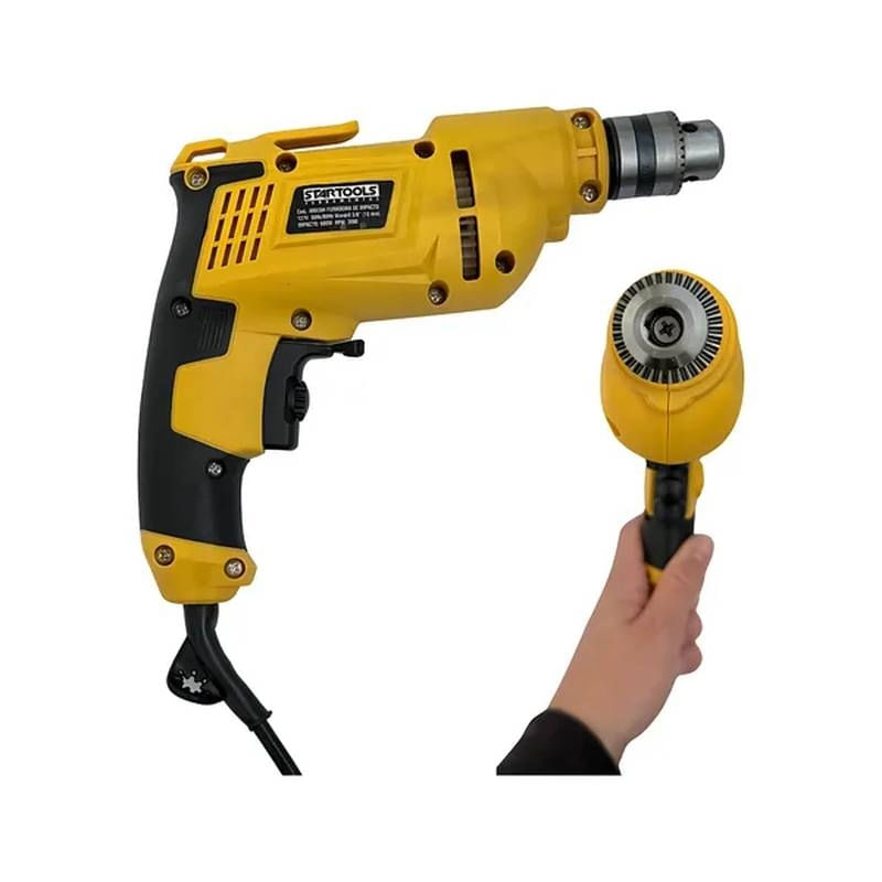 Furadeira de Impacto 127v 10 Velocidades Mandril 3000 RPM ===================================== Uma ferramenta potente e versátil, ideal para uso residencial ou profissional em diversas aplicações. Seu design ergonômico conta com cabo emborrachado, proporciona maior conforto e firmeza durante o uso, mesmo por longos períodos. A furadeira apresenta função reversível, ideal para parafusamento e remoção de brocas, além de mandril com chave de aperto, garantindo firmeza na fixação dos acessórios. ===================================== Contém: 01 Furadeira de Impacto 01 Mandril Capacidade de Furação: - Aço: até 10mm (3/8'') - Madeira: até 20mm (3/4'') - Concreto: até 10mm (3/8'') Especificações: - Material: Aço, Plástico, Ferro e Borracha - Medida: 23cm x 26cm x 08cm - Voltagem: 127v - Velocidades: 10 - Mandril: 3/8" (10mm) - Torque: 10Nm - Frequência: 50Hz/60Hz - Duplo Isolamento Térmico - Tipo do Mandril: Aperto Rápido - Velocidade Reversível e opção automática - Compacta e Prática de Usar - Cabo Emborrachado - Potência Impacto: 600w - Potência Motor: 300w - Rotação: de 0 a 3000 RPM - Peso: 1190 gramas - Cor: Amarelo com Preto ===================================== Devido à diferença entre monitores e iluminação diferentes, pode haver variação na tonalidade apresentada no anúncio. Medidas muito aproximadas.