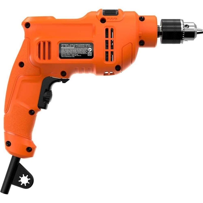 Furadeira De Impacto 3/8, 550 W, 220V~, Bed710550-b2 Black+decker OstenvonderFuradeira de Impacto 3/8, 550 W, 220V~, Bed710550-b2 Black+decker OstenVonder -Conteúdo da embalagem: 1 Furadeira de impacto. Acompanha: 1 chave para mandril.Aplicação: Indicada para realizar furos em concreto, metal e madeira.Destaques: Possui gatilho de dois dedos com velocidade variável e função reversível. Trava de gatilho para uso contínuo. Design compacto para diversas aplicações.Garantia - E (CDC): Garantia legal: 90 diasReferência: BED710550-B2Modelo: BED710550Potência: 550 WTipo de mandril: Com chaveCapacidade do mandril: 3/8Sistema de reversão: SimTipo de velocidade: FixaRotações por minuto - rpm: 3.000/minImpactos por minuto (ipm): 48.000/minCapacidade máxima de perfuração em aço: 10 mmCapacidade máxima de perfuração em madeira: 25 mmCapacidade máxima de perfuração em concreto: 10 mmTensão (V): 220V~Frequência: 60 HzMassa aproximada (peso): 1,63 kgDestaques Comercial: Possui gatilho de dois dedos com velocidade variável, reversível e trava para uso contínuo.Aplicação Comercial: Indicada para realizar furos em concreto, metal e madeira.Características Gerais do Produto:Garantia: - 3 Meses