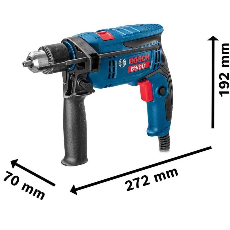 Furadeira De Impacto Gsb 13 Reversível Bivolt - 06012b80z0-000 - Bosch Furadeira De Impacto Gsb 13 Re BivoltFuradeira de Impacto GSB 13 Reversível Bivolt - 06012B80Z0-000 - BOSCHDescrição:A furadeira de impacto Bosch GSB 13 RE é a primeira furadeira de impacto do mundo a oferecer a tecnologia bivolt! Potente, robusta e durável, tem potência equivalente a uma ferramenta de 750W! Conta com menor vibração e menos ruído, além de uma carcaça reforçada de alta qualidade que aumenta a vida útil da ferramenta. Proporciona mais conveniência e autonomia para trabalhar em qualquer tensão sem necessidade de transformadores, garantindo mais produtividade e redução de custos com manutenção. É indicada para perfuração em concreto, alvenaria, madeira e metal com e sem impacto. Ideal para pedreiros, marceneiros, carpinteiros, instaladores em geral, vidraceiros, oficinas de manutenção, serralheiros, eletricistas e calheiros. A furadeira de impacto Bosch GSB 13 RE acompanha: 1 manual de instruções, 1 chave de mandril, 1 empunhadeira auxiliar, 1 limitador de profundidade. Garantia 2 anos Bosch + 1 ano adicional fazendo o cadastro no aplicativo BeConnected.Acompanha:- 1 Furadeira de Impacto GSB 13 RE- 1 manual de instruções- 1 Chave de mandril- 1 Empunhadeira auxiliar- 1 limitador de profundidade* Imagens meramente ilustrativas.Voltagem - BivoltPotência - 750 Wattsmeli_shipping_mode - me1