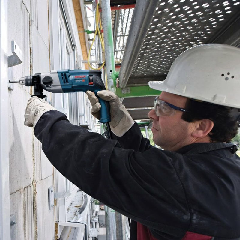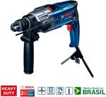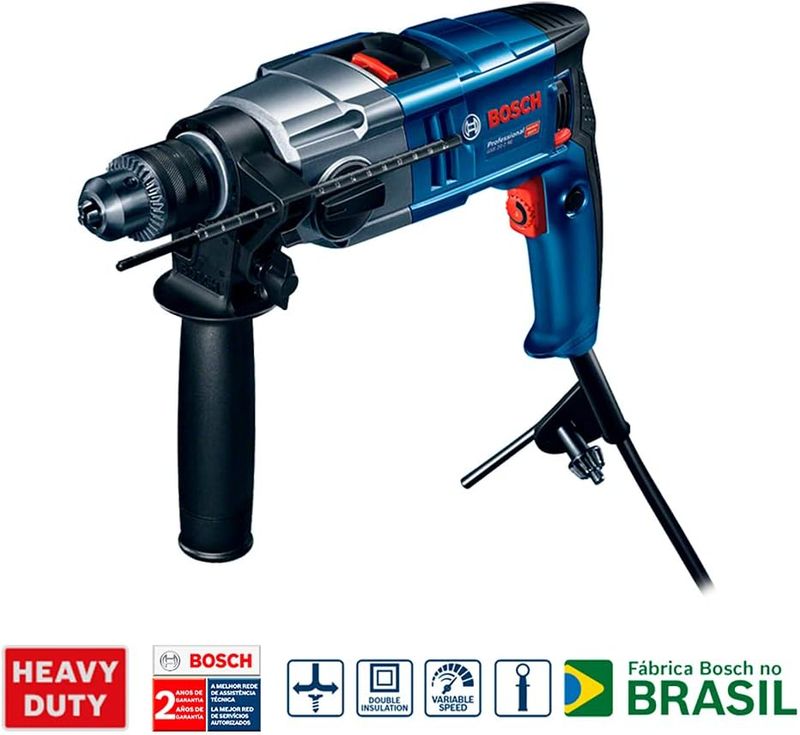 A Furadeira de Impacto Bosch GSB 20-2 é super potente com 800W, possui sistema de segurança de embreagem no caso de bloqueio súbito do acessório para maior proteção do usuário. Vem com botão rotativo de ajuste de velocidade para melhor controle dos trabalho e vem também com botão trava. Recomendada para uso industrial. Trabalho intenso Especificações Técnicas:- Potência nominal absorvida 800 W- Tensão 220V- Peso 2,5 kg- Nº de rotações em vazio, 1ª velocidade 0¿1.100 r.p.m.- Dimensões da ferramenta (comprimento) 368 mm- Nº máx. de impactos em vazio 0¿/48.000 i.p.m.- Torque nominal 5,2/2,0 Nm- Amplitude de aperto, min./máx. 1,5¿13 mm- Nº de rotações em vazio, 2ª velocidade 3.000 r.p.m.- Potência útil 420 W- Mandril de encaixe do veio da broca 1/2"¿ 20 UNF- Dimensões da ferramenta (largura) 77 mm- Dimensões da ferramenta (altura) 220 mm- Faixa de perfuração- Diâmetro de perfuração em alvenaria 22/16mm- Diâmetro de perfuração em concreto 20/13mm- Diâmetro de perfuração em madeira 40/25mm- Diâmetro de perfuração em aço 13/8mm Conteúdo da Embalagem: - 1 Furadeira de Impacto GSB 20-2 RE.- Empunhadeira adicional.- Limitador de profundidade.- Chave de mandril.Voltagem: 220vSKU: 11170415