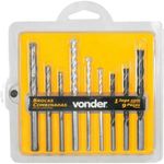 Furadeira De Impacto1/2 Kit Com 9 Brocas 220V Fiv709 VonderConteúdo da Embalagem:1 Furadeira com impacto FIV 710, acompanha: 1 maleta, 1 chave para mandril, 1 limitador de profundidade, 1 punho auxiliar, 3 brocas de aço rápido (5 mm, 6 mm e 8 mm), 3 brocas três pontas para madeira (5 mm, 6 mm e 8 mm) e 3 brocas com ponta de metal duro/vídea (5 mm, 6 mm e 8 mm)Descrição:Furadeira com impacto 1/2, FIV 709, 220 V~, com jogo de 9 brocas, VONDERTensão:220VAplicações e dicas de uso:Indicada para metal e madeira na função sem impacto e na função com impacto para concreto e alvenaria. Deve ser utilizada com acessórios adequados.Destaques e diferenciais:Acompanha jogo de brocas combinadas com 9 peças, possui interruptor eletrônico com pré-seleção de velocidade, que permite controlar a rotação da máquina, possibilitando iniciar um furo com uma rotação baixa e aumentar gradativamente de acordo com a necessidade de perfuração. Conta também com sistema reversível, que facilita a retirada da broca caso ela trave durante a perfuração, botão trava do interruptor para trabalhos contínuos, punho auxiliar e limitador de profundidade, conferindo maior praticidade ao operador. Conta ainda com motor com dupla isolação, que garante maior segurança.Características Técnicas:Potência (W): 710 Capacidade do mandril: 1/2 - 13 mm Tipo de velocidade: Variável Sistema de reversão: Reversível Rotação - velocidade 1(rpm): 0 - 2.800/min Rotação - velocidade 2(rpm): N/A Capacidade máxima de perfuração em aço: 13,0 mm Capacidade máxima de perfuração em madeira: 20,0 mm Capacidade máxima de perfuração em concreto: 13,0 mm Tensão (V): 220 V~ Segue norma: ABNT NBR IEC 60745-1 e ABNT NBR IEC 60745-2-1Máquina: Garantia legal: 90 dias + garantia contratual: 9 meses / Acessórios: Garantia legal: 90 dias Alimentação: Elétrica | Cor: Amarela | Garantia do Fabricante: 3 | Peso do Produto: 2.5 | Potência: 709 | Produto: Furadeira | Tensão Elétrica: 220V