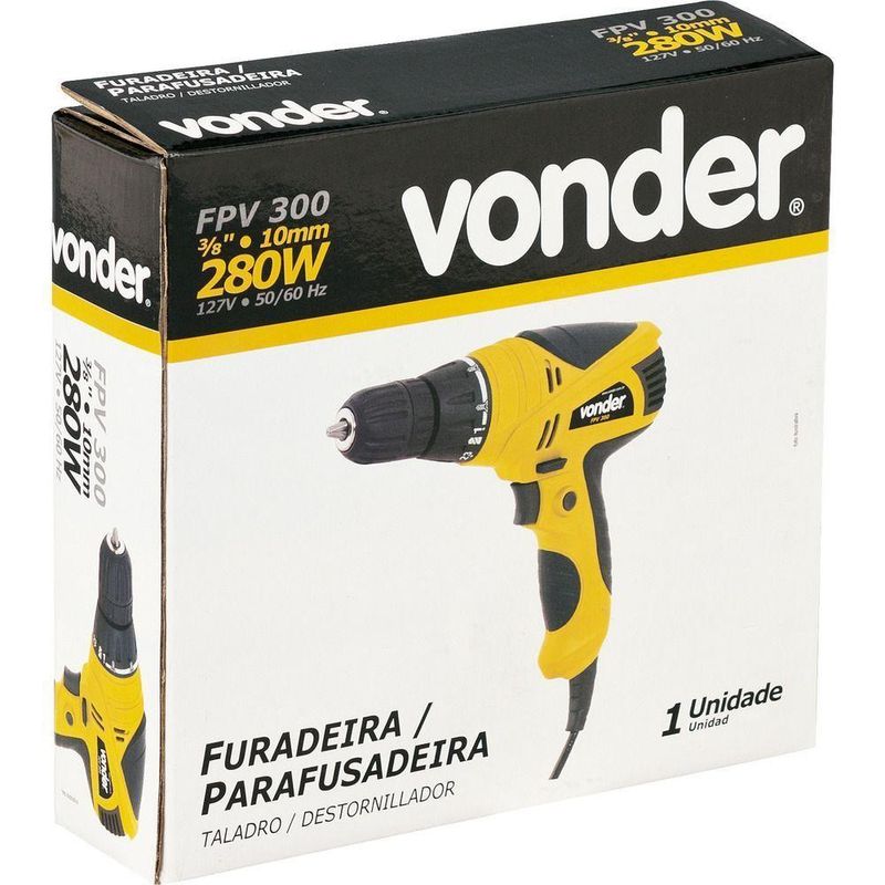 Furadeira Parafusadeira Elétrica 3/8 280W 220V Fpv300Conteúdo da embalagem1 Furadeira/parafusadeira.Aplicações e dicas de usoIndicada para soltar e apertar parafusos e fazer pequenos furos em madeiras ou metais. Não indicada para uso em concreto.Destaques e diferenciaisCompacta e prática de usar. Possui regulagem de torque em 23 posições, adequando-se à necessidade de aperto de acordo com a dureza do material. Cabo com revestimento emborrachado para maior conforto do operador, além de dupla isolação, garantindo maior segurança. Possui ainda, mandril de aperto rápido proporcionando troca rápida do acessório utilizado.DETALHES TÉCNICOSTensão (V):220 V~Potência (W):280Frequência (Hz):50/60 HzRotação (rpm):0 - 750Torque (Nm):10,0 NmCapacidade máxima de furação em aço (mm):10,0 mmCapacidade máxima de furação em madeira (mm):20,0 mmSistema de reversão:ReversívelTipo de velocidade:VariávelTipo de mandril:Aperto rápidoCapacidade do mandril:3/8 - 10 mmSegue norma:ABNT NBR IEC 60745-1, ABNT NBR IEC 60745-2-1 e ABNT NBR IEC 60745-2-2Prazo de garantia:1 anoPeso aproximado:1,6 kg Produto: Furadeira | Tensão Elétrica: Bivolt | Alimentação: Bateria | Potência: 750 | Cor: Amarela