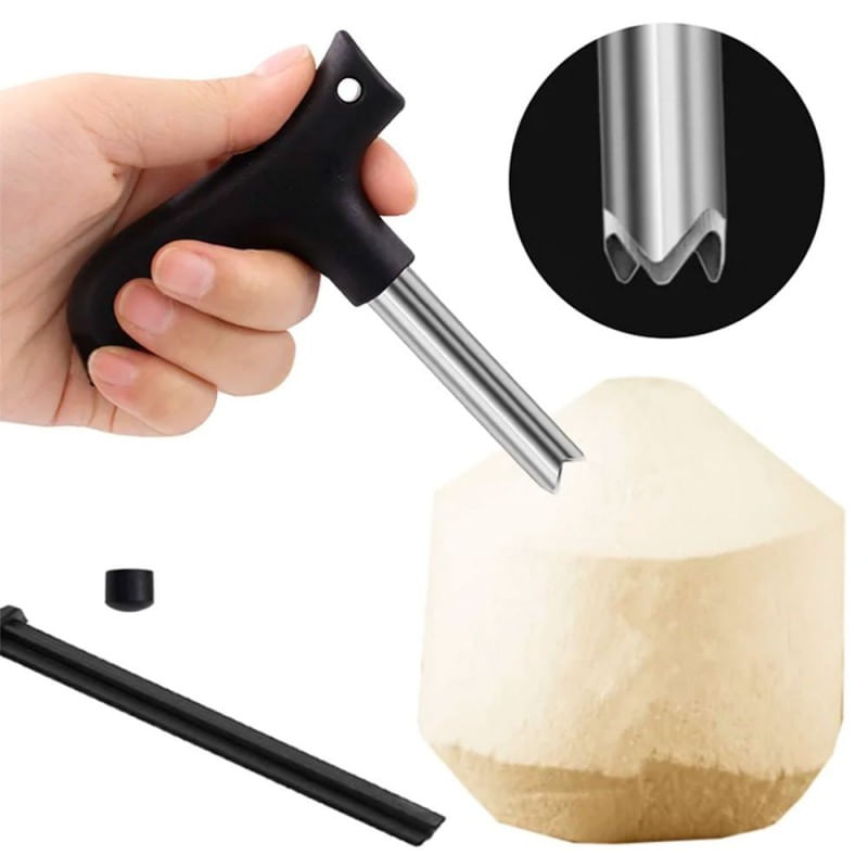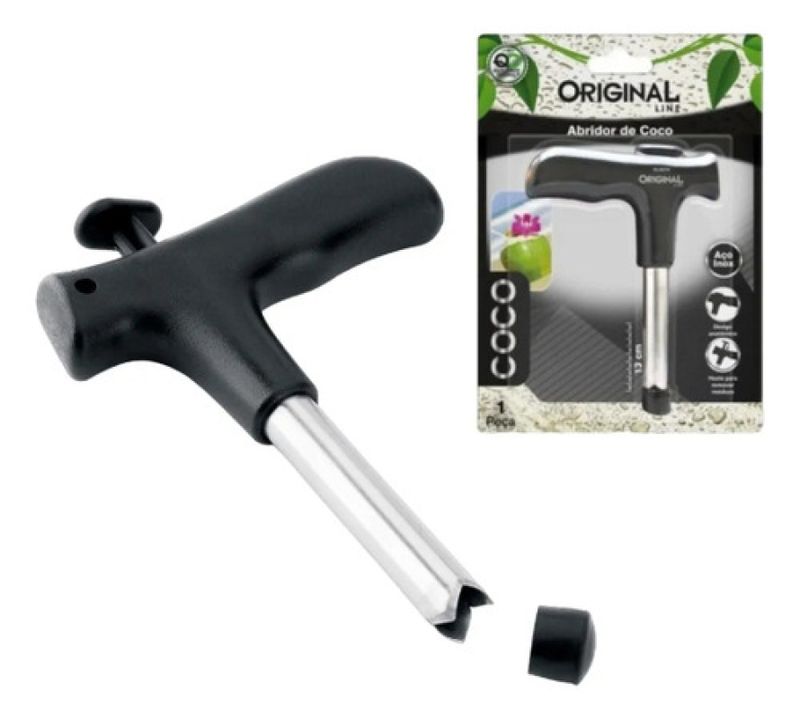 Fura Coco Furador Perfurador Manual Abridor Rápido Inox Furador de coco em aço inoxNunca ficou tão fácil abrir coco de uma maneira prática e higiênica. Furador de coco em Aço Inox e poliestireno, prático e higiênico. Basta colocar a ponta cortante do furador e girar para furar o seu coco, não é necessário o uso de faca, super seguro. O furador. possui tubo de metal durável, resistente e fácil de limpar com sua haste. Design anatômico e robusto que permite abrir o coco de forma rápida e segura. Produto de primeira linha* Tenha cuidado ao manusear o produto e o mantenha fora de alcance de crianças.* Para garantir a durabilidade do produto, recomenda-se seca-lo bem após o uso.- Medidas aproximadas: 13cm x 10cm- Material: Aço Inox