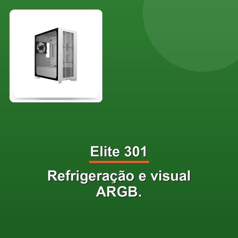 Gabinete Cooler Master Elite301 Branco LiteO Cooler Master Elite 301 White Lite é a escolha perfeita para quem busca performance e organização em um gabinete compacto e elegante. Com design branco e clean, o Elite 301 White Lite oferece excelente visual para qualquer setup. Sua grande grade de entrada de ar garante um fluxo de ar eficiente, mantendo seu sistema fresco e pronto para qualquer desafio, seja jogos ou tarefas de alta demanda.A instalação e manutenção do seu PC nunca foram tão fáceis. O painel frontal, removível por ímãs, facilita o acesso a componentes internos e o processo de limpeza, enquanto a cobertura ventilada para a fonte permite a instalação de diversas unidades, com ou sem refrigeração ativa.Com suporte para placas-mãe ITX e Micro ATX, além de slots de expansão, baías para drives e espaço para coolers de CPU de até 163,5mm e placas de vídeo de até 365mm, o Elite 301 White Lite oferece amplo potencial para seu sistema, permitindo futuras atualizações.A conectividade é reforçada pela porta USB 3.2 Gen 1 Tipo-C integrada ao painel de I/O, garantindo transferência de dados rápida e confiável. Além disso, o Elite 301 White Lite suporta até seis ventiladores e um radiador de 280mm, proporcionando máxima tranquilidade e desempenho para seus componentes. Construído em materiais premium como aço e plástico, o Elite 301 White Lite apresenta excelente durabilidade e resistência, garantindo um gabinete confiável para anos de uso.Invista na qualidade e no estilo do Cooler Master Elite 301 White Lite para o seu PC.O Cooler Master Elite 301 White Lite é a escolha perfeita para quem busca performance e organização em um gabinete compacto e elegante. Com design branco e clean, o Elite 301 White Lite oferece excelente visual para qualquer setup. Sua grande grade de entrada de ar garante um fluxo de ar eficiente, mantendo seu sistema fresco e pronto para qualquer desafio, seja jogos ou tarefas de alta demanda.A instalação e manutenção do seu PC nunca foram tão fáceis. O painel frontal, removível por ímãs, facilita o acesso a componentes internos e o processo de limpeza, enquanto a cobertura ventilada para a fonte permite a instalação de diversas unidades, com ou sem refrigeração ativa.Com suporte para placas-mãe ITX e Micro ATX, além de slots de expansão, baías para drives e espaço para coolers de CPU de até 163,5mm e placas de vídeo de até 365mm, o Elite 301 White Lite oferece amplo potencial para seu sistema, permitindo futuras atualizações.A conectividade é reforçada pela porta USB 3.2 Gen 1 Tipo-C integrada ao painel de I/O, garantindo transferência de dados rápida e confiável. Além disso, o Elite 301 White Lite suporta até seis ventiladores e um radiador de 280mm, proporcionando máxima tranquilidade e desempenho para seus componentes. Construído em materiais premium como aço e plástico, o Elite 301 White Lite apresenta excelente durabilidade e resistência, garantindo um gabinete confiável para anos de uso.Invista na qualidade e no estilo do Cooler Master Elite 301 White Lite para o seu PC.