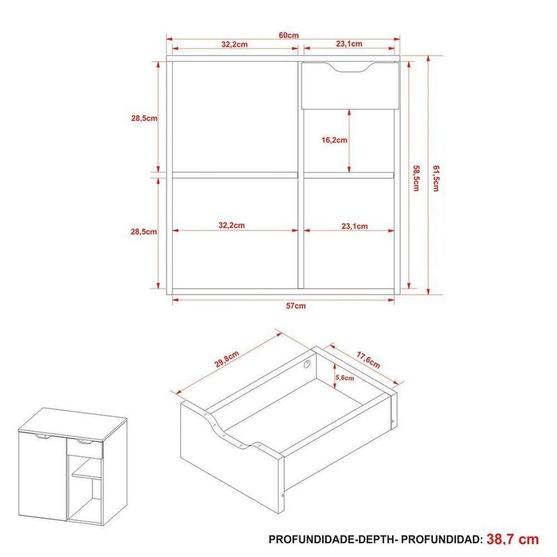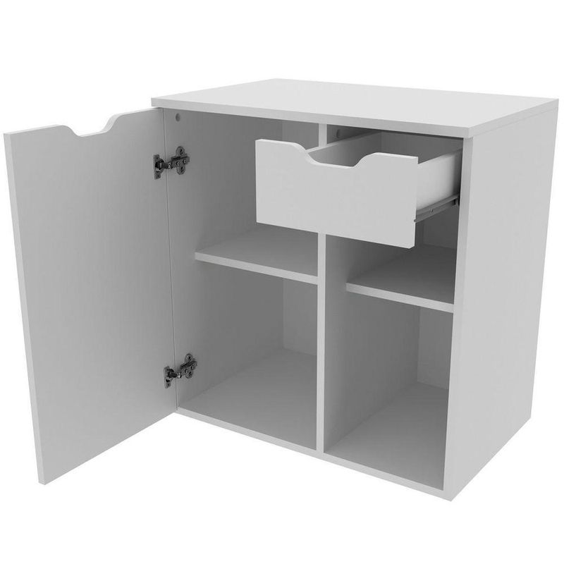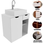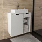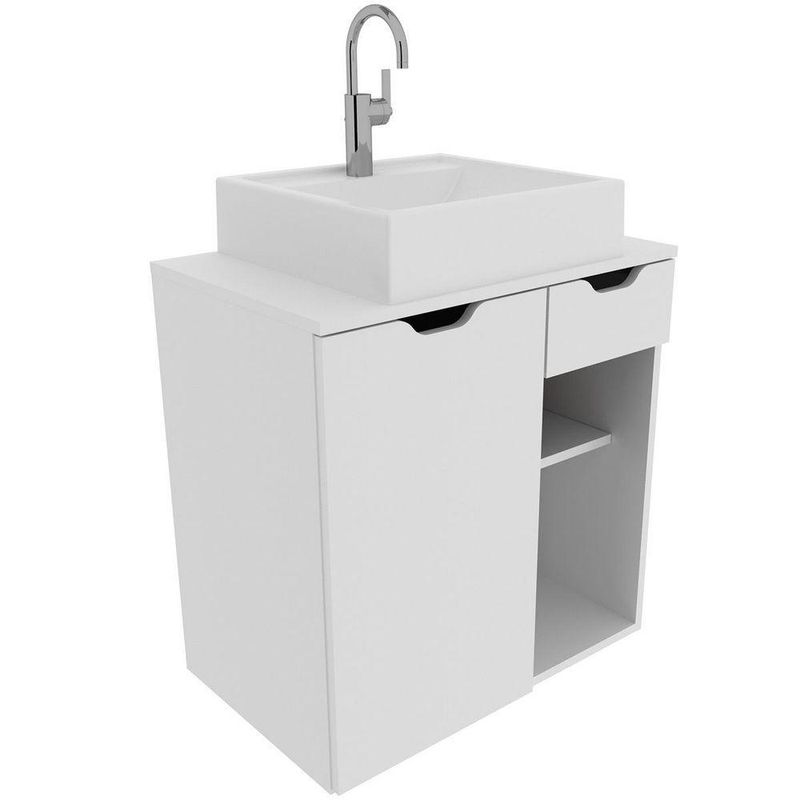 Gabinete De Banheiro 60 Cm 1 Porta Com Cuba Romana BrancoO Gabinete de Banheiro Romana 60 cm com Cuba é uma solução prática e elegante para quem busca organizar o ambiente com charme. Com design contemporâneo e acabamento em pintura UV, o móvel traz um visual sofisticado e durável, valorizando a decoração do banheiro com leveza e modernidade.Dimensões do Gabinete Suspenso para Banheiro:- Altura: 61,5 cm- Largura: 60 cm- Profundidade: 38,7 cmDimensões da Cuba para Gabinete de Banheiro:- Altura: 11,5 cm- Largura: 35 cm- Comprimento: 34 cmCaracterísticas do Armário de Banheiro Suspenso 60 cm com Cuba:- Estrutura em mdp;- Acabamento em pintura UV;- 1 porta de bater;- 1 gaveta com corrediça metálica;- 4 prateleiras;- Suporta 10 kg tampo e 3 kg cada prateleira/gaveta;- Cuba em mármore sintético e acabamento em brilho polido;- Não acompanha torneira;- Não acompanha objetos de decoração;- Não nos responsabilizamos pela montagem dos produtos. Todos os produtos acompanham acessórios para que sejam montados.- Não nos responsabilizamos, no ato da entrega, por subir escadas/elevadores ou transporte por guincho em apartamentos. Eventuais despesas são de responsabilidade do comprador;- Confira as dimensões deste produto e certifique-se de que passará normalmente por supostos elevadores, portas, escadas e/ou corredores de sua residência- Não aceitamos devolução após o período de arrependimento de 7 dias corridos.Características Gerais do Produto: - Altura: Gabinete: 61,5 cm / Cuba: 11,5 cm - Ideal para: Banheiro - Informações Adicionais: 1 gaveta com corrediça metálica/4 prateleiras/Não acompanha torneira - Largura: Gabinete: 60 cm / Cuba: 35 cm - Material: Gabinete: Estrutura em MDP / Cuba: Mármore sintético - Portas: 1 Porta - Profundidade: Gabinete: 38,7 cm / Cuba: 34 cm - Tipo de Porta: Porta de Bater - Acabamento: Acabamento em pintura UV - Informações Adicionais: - Não nos responsabilizamos pela montagem dos produtos. Todos os produtos acompanham acessórios para que sejam montados. - Não nos responsabilizamos, no ato da entrega, por subir escadas/elevadores ou transporte por guincho em apartamentos. Eventuais despesas são de responsabilidade do comprador; - Confira as dimensões deste produto e certifique-se de que passará normalmente por supostos elevadores, portas, escadas e/ou corredores de sua residência; - Não aceitamos devolução de produtos com caixas violadas ou materiais danificados, confira a quantidade de volumes e se o que está sendo entregue corresponde com a mercadoria adquirida, não aceitamos devolução após o período de arrependimento de 7 dias corridos.Acompanha o produto: - 1 x Gabinete de Banheiro 60 cm 1 Porta 1 Gaveta Romana 1 x Cuba para Gabinete de BanheiroManual de MontagemAcessórios de MontagemGarantia: - 3 Meses