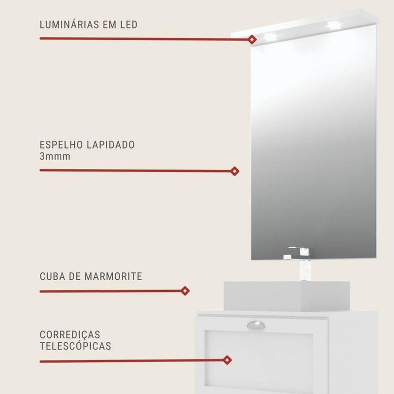 Gabinete Para Banheiro Com Tampo Cuba E Armario 60cm Retro Mdf Branco Milano - On MóveisGabinete para Banheiro com Armário – On MóveisQuando falamos em decoração de banheiro, muitas vezes pensamos logo no tipo de revestimento, nos espelhos ou nas cores das paredes. Mas existe uma peça fundamental e muito versátil para compor o décor do ambiente: o gabinete de banheiro.Design funcional e completoÉ o caso do nosso Gabinete Milano, com dimensões de 60 cm de largura, 83 cm de altura total com os pés e 40 cm de profundidade. Além de fazer parte da decoração, é uma das peças mais funcionais da casa, oferecendo espaço extra de armazenamento para manter o banheiro sempre organizado. Produzido 100% em MDF, conta com 2 portas e 1 gaveta, além de um kit de pés em madeira maciça com 20 cm de altura, que dá um toque de delicadeza ao produto.Compatível com qualquer encanamentoEncanamento no chão ou na parede? Não tem problema! Este produto foi projetado para acomodar perfeitamente os encanamentos do seu banheiro, seja como for.Cuba inclusaDiscreta e charmosa, a cuba de marmorite que acompanha o conjunto tem medidas de 35 cm de largura, 35 cm de profundidade e 11 cm de altura, com estrutura funcional e minimalista.Armário com espelho inclusoO conjunto acompanha um armário superior com espelho, ideal para complementar a organização e trazer mais praticidade ao seu banheiro. Funcional e elegante, ele combina perfeitamente com o design retrô do gabinete.Durabilidade e proteção realCom tecnologias de fabricação avançadas, este móvel oferece até 70% mais resistência à umidade em comparação a móveis convencionais, garantindo mais durabilidade e vida útil, mesmo em ambientes úmidos. Usamos estrutura reforçada, travamentos inteligentes e ferragens com qualidade comprovada. Não é móvel descartável: é móvel pensado pra resistir ao uso real do dia a dia.Garantia de fábrica: 5 anosAcreditamos tanto na qualidade dos nossos produtos que oferecemos 5 anos de garantia de fábrica. Compre com total segurança, sabendo que seu móvel foi feito para durar de verdade.Embalagem, entrega e montagemProduto entregue desmontado para garantir mais segurança e qualidade no transporte. Embalagem reforçada e bem protegida. Cuidamos de cada etapa da entrega, desde a saída da fábrica até chegar na sua casa. Acompanha manual de montagem. Para uma montagem perfeita, recomendamos um profissional.Conteúdo da embalagem01 Gabinete para banheiro com tampo01 kit de pés em madeira maciça01 Cuba de marmorite01 Armário com espelhoKit de ferragens para montagemManual de montagemObjetos decorativos, torneira e ralo NÃO acompanham o produtoOn Móveis, feito para durar.Gabinete para Banheiro com Armário – On MóveisQuando falamos em decoração de banheiro, muitas vezes pensamos logo no tipo de revestimento, nos espelhos ou nas cores das paredes. Mas existe uma peça fundamental e muito versátil para compor o décor do ambiente: o gabinete de banheiro.Design funcional e completoÉ o caso do nosso Gabinete Milano, com dimensões de 60 cm de largura, 83 cm de altura total com os pés e 40 cm de profundidade. Além de fazer parte da decoração, é uma das peças mais funcionais da casa, oferecendo espaço extra de armazenamento para manter o banheiro sempre organizado. Produzido 100% em MDF, conta com 2 portas e 1 gaveta, além de um kit de pés em madeira maciça com 20 cm de altura, que dá um toque de delicadeza ao produto.Compatível com qualquer encanamentoEncanamento no chão ou na parede? Não tem problema! Este produto foi projetado para acomodar perfeitamente os encanamentos do seu banheiro, seja como for.Cuba inclusaDiscreta e charmosa, a cuba de marmorite que acompanha o conjunto tem medidas de 35 cm de largura, 35 cm de profundidade e 11 cm de altura, com estrutura funcional e minimalista.Armário com espelho inclusoO conjunto acompanha um armário superior com espelho, ideal para complementar a organização e trazer mais praticidade ao seu banheiro. Funcional e elegante, ele combina perfeitamente com o design retrô do gabinete.Durabilidade e proteção realCom tecnologias de fabricação avançadas, este móvel oferece até 70% mais resistência à umidade em comparação a móveis convencionais, garantindo mais durabilidade e vida útil, mesmo em ambientes úmidos. Usamos estrutura reforçada, travamentos inteligentes e ferragens com qualidade comprovada. Não é móvel descartável: é móvel pensado pra resistir ao uso real do dia a dia.Garantia de fábrica: 5 anosAcreditamos tanto na qualidade dos nossos produtos que oferecemos 5 anos de garantia de fábrica. Compre com total segurança, sabendo que seu móvel foi feito para durar de verdade.Embalagem, entrega e montagemProduto entregue desmontado para garantir mais segurança e qualidade no transporte. Embalagem reforçada e bem protegida. Cuidamos de cada etapa da entrega, desde a saída da fábrica até chegar na sua casa. Acompanha manual de montagem. Para uma montagem perfeita, recomendamos um profissional.Conteúdo da embalagem01 Gabinete para banheiro com tampo01 kit de pés em madeira maciça01 Cuba de marmorite01 Armário com espelhoKit de ferragens para montagemManual de montagemObjetos decorativos, torneira e ralo NÃO acompanham o produtoOn Móveis, feito para durar.