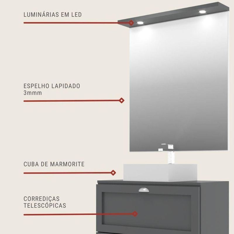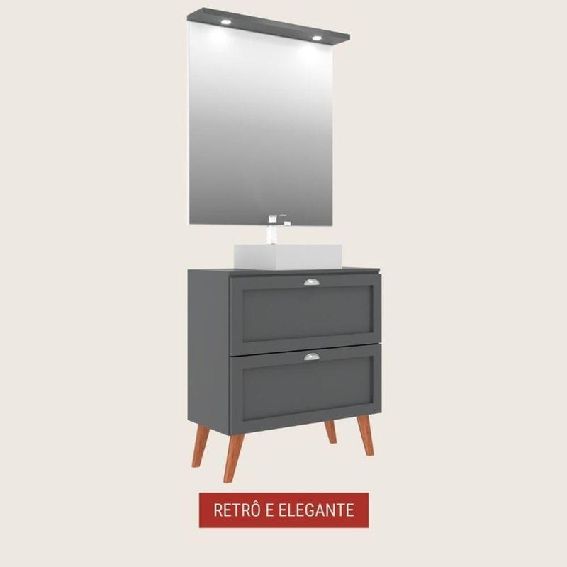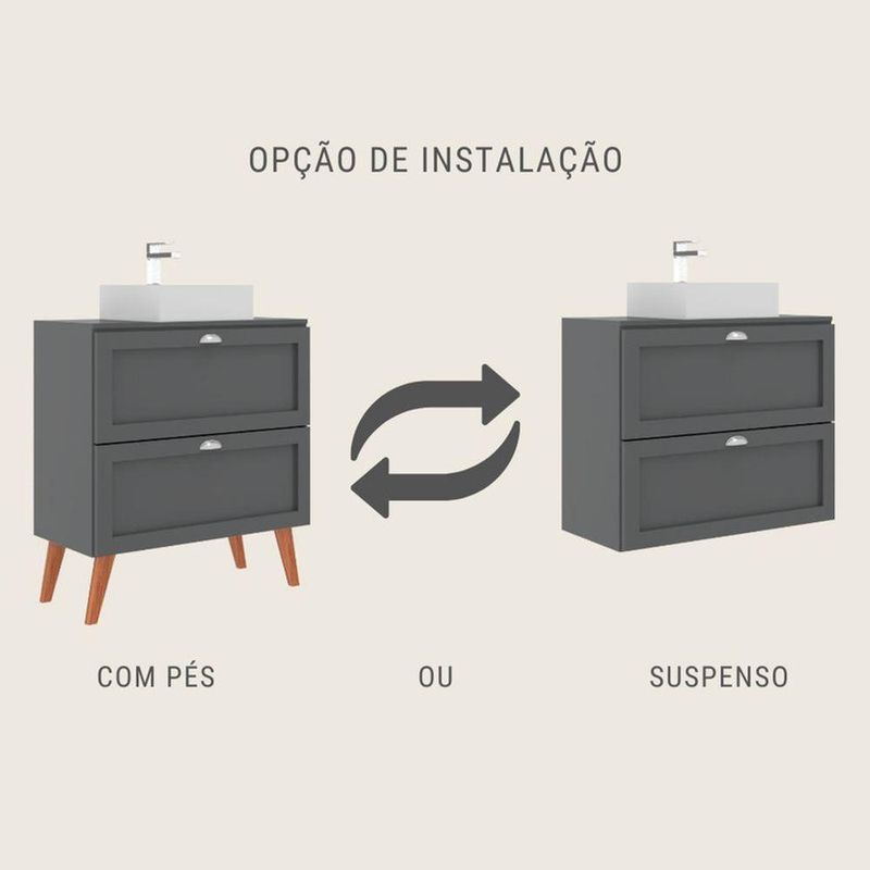 Gabinete Para Banheiro Com Tampo Cuba E Espelho Redondo 80cm Retro Mdf Grafite Milano - On MóveisGabinete para Banheiro com Espelho Redondo – On MóveisQuando falamos em decoração de banheiro, muitas vezes pensamos logo no tipo de revestimento, nos espelhos ou nas cores das paredes. Mas existe uma peça fundamental e muito versátil para compor o décor do ambiente: o gabinete de banheiro.Design funcional e completoÉ o caso do nosso Gabinete Milano, com dimensões de 80 cm de largura, 83 cm de altura total com os pés e 40 cm de profundidade. Além de fazer parte da decoração, é uma das peças mais funcionais da casa, oferecendo espaço extra de armazenamento para manter o banheiro sempre organizado. Produzido 100% em MDF, conta com 2 portas e 1 gaveta, além de um kit de pés em madeira maciça com 20 cm de altura, que dá um toque de delicadeza ao produto.Compatível com qualquer encanamentoEncanamento no chão ou na parede? Não tem problema! Este produto foi projetado para acomodar perfeitamente os encanamentos do seu banheiro, seja como for.Cuba inclusaDiscreta e charmosa, a cuba de marmorite que acompanha o conjunto tem medidas de 35 cm de largura, 35 cm de profundidade e 11 cm de altura, com estrutura funcional e minimalista.Espelho redondo inclusoPara completar o visual retrô e sofisticado, o conjunto acompanha um espelho redondo moderno, que harmoniza perfeitamente com a estética do gabinete, deixando o banheiro ainda mais elegante e aconchegante.Durabilidade e proteção realCom tecnologias de fabricação avançadas, este móvel oferece até 70% mais resistência à umidade em comparação a móveis convencionais, garantindo mais durabilidade e vida útil, mesmo em ambientes úmidos. Usamos estrutura reforçada, travamentos inteligentes e ferragens com qualidade comprovada. Não é móvel descartável: é móvel pensado pra resistir ao uso real do dia a dia.Garantia de fábrica: 5 anosAcreditamos tanto na qualidade dos nossos produtos que oferecemos 5 anos de garantia de fábrica. Compre com total segurança, sabendo que seu móvel foi feito para durar de verdade.Embalagem, entrega e montagemProduto entregue desmontado para garantir mais segurança e qualidade no transporte. Embalagem reforçada e bem protegida. Cuidamos de cada etapa da entrega, desde a saída da fábrica até chegar na sua casa. Acompanha manual de montagem. Para uma montagem perfeita, recomendamos um profissional.Conteúdo da embalagem01 Gabinete para banheiro com tampo01 kit de pés em madeira maciça01 Cuba de marmorite01 Espelho redondoKit de ferragens para montagemManual de montagemObjetos decorativos, torneira e ralo NÃO acompanham o produtoOn Móveis, feito para durar.Gabinete para Banheiro com Espelho Redondo – On MóveisQuando falamos em decoração de banheiro, muitas vezes pensamos logo no tipo de revestimento, nos espelhos ou nas cores das paredes. Mas existe uma peça fundamental e muito versátil para compor o décor do ambiente: o gabinete de banheiro.Design funcional e completoÉ o caso do nosso Gabinete Milano, com dimensões de 80 cm de largura, 83 cm de altura total com os pés e 40 cm de profundidade. Além de fazer parte da decoração, é uma das peças mais funcionais da casa, oferecendo espaço extra de armazenamento para manter o banheiro sempre organizado. Produzido 100% em MDF, conta com 2 portas e 1 gaveta, além de um kit de pés em madeira maciça com 20 cm de altura, que dá um toque de delicadeza ao produto.Compatível com qualquer encanamentoEncanamento no chão ou na parede? Não tem problema! Este produto foi projetado para acomodar perfeitamente os encanamentos do seu banheiro, seja como for.Cuba inclusaDiscreta e charmosa, a cuba de marmorite que acompanha o conjunto tem medidas de 35 cm de largura, 35 cm de profundidade e 11 cm de altura, com estrutura funcional e minimalista.Espelho redondo inclusoPara completar o visual retrô e sofisticado, o conjunto acompanha um espelho redondo moderno, que harmoniza perfeitamente com a estética do gabinete, deixando o banheiro ainda mais elegante e aconchegante.Durabilidade e proteção realCom tecnologias de fabricação avançadas, este móvel oferece até 70% mais resistência à umidade em comparação a móveis convencionais, garantindo mais durabilidade e vida útil, mesmo em ambientes úmidos. Usamos estrutura reforçada, travamentos inteligentes e ferragens com qualidade comprovada. Não é móvel descartável: é móvel pensado pra resistir ao uso real do dia a dia.Garantia de fábrica: 5 anosAcreditamos tanto na qualidade dos nossos produtos que oferecemos 5 anos de garantia de fábrica. Compre com total segurança, sabendo que seu móvel foi feito para durar de verdade.Embalagem, entrega e montagemProduto entregue desmontado para garantir mais segurança e qualidade no transporte. Embalagem reforçada e bem protegida. Cuidamos de cada etapa da entrega, desde a saída da fábrica até chegar na sua casa. Acompanha manual de montagem. Para uma montagem perfeita, recomendamos um profissional.Conteúdo da embalagem01 Gabinete para banheiro com tampo01 kit de pés em madeira maciça01 Cuba de marmorite01 Espelho redondoKit de ferragens para montagemManual de montagemObjetos decorativos, torneira e ralo NÃO acompanham o produtoOn Móveis, feito para durar.