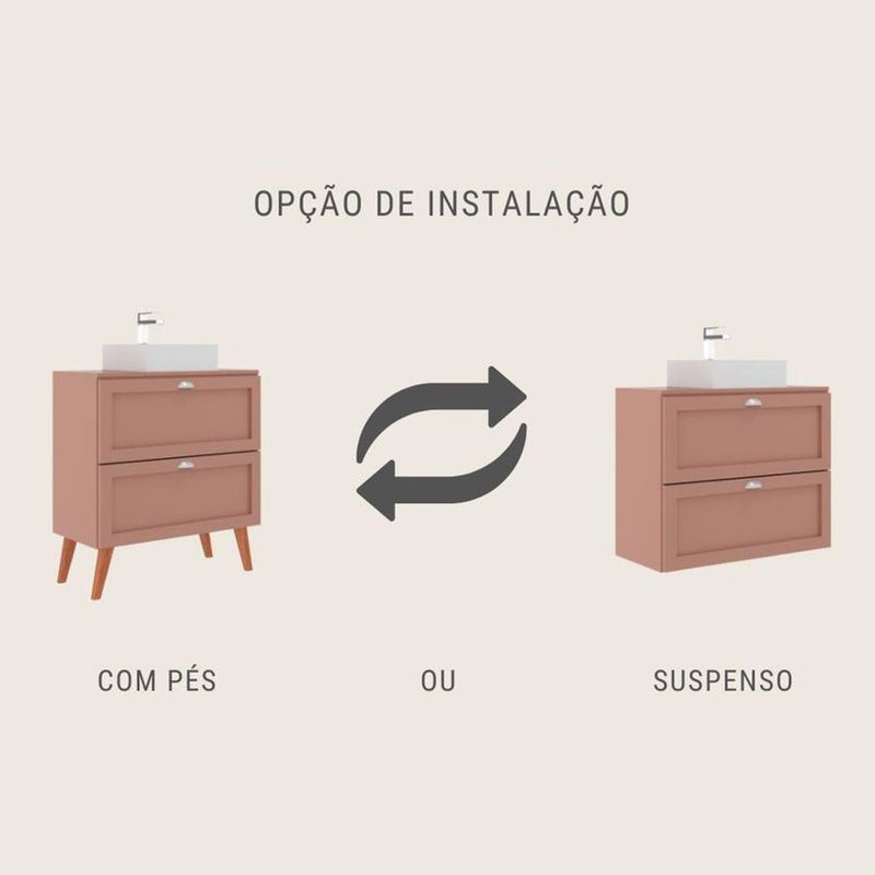 Gabinete Para Banheiro Com Tampo Cuba E Espelho Redondo 80cm Retro Mdf Rosa Milano - On MóveisGabinete para Banheiro com Espelho Redondo – On MóveisQuando falamos em decoração de banheiro, muitas vezes pensamos logo no tipo de revestimento, nos espelhos ou nas cores das paredes. Mas existe uma peça fundamental e muito versátil para compor o décor do ambiente: o gabinete de banheiro.Design funcional e completoÉ o caso do nosso Gabinete Milano, com dimensões de 80 cm de largura, 83 cm de altura total com os pés e 40 cm de profundidade. Além de fazer parte da decoração, é uma das peças mais funcionais da casa, oferecendo espaço extra de armazenamento para manter o banheiro sempre organizado. Produzido 100% em MDF, conta com 2 portas e 1 gaveta, além de um kit de pés em madeira maciça com 20 cm de altura, que dá um toque de delicadeza ao produto.Compatível com qualquer encanamentoEncanamento no chão ou na parede? Não tem problema! Este produto foi projetado para acomodar perfeitamente os encanamentos do seu banheiro, seja como for.Cuba inclusaDiscreta e charmosa, a cuba de marmorite que acompanha o conjunto tem medidas de 35 cm de largura, 35 cm de profundidade e 11 cm de altura, com estrutura funcional e minimalista.Espelho redondo inclusoPara completar o visual retrô e sofisticado, o conjunto acompanha um espelho redondo moderno, que harmoniza perfeitamente com a estética do gabinete, deixando o banheiro ainda mais elegante e aconchegante.Durabilidade e proteção realCom tecnologias de fabricação avançadas, este móvel oferece até 70% mais resistência à umidade em comparação a móveis convencionais, garantindo mais durabilidade e vida útil, mesmo em ambientes úmidos. Usamos estrutura reforçada, travamentos inteligentes e ferragens com qualidade comprovada. Não é móvel descartável: é móvel pensado pra resistir ao uso real do dia a dia.Garantia de fábrica: 5 anosAcreditamos tanto na qualidade dos nossos produtos que oferecemos 5 anos de garantia de fábrica. Compre com total segurança, sabendo que seu móvel foi feito para durar de verdade.Embalagem, entrega e montagemProduto entregue desmontado para garantir mais segurança e qualidade no transporte. Embalagem reforçada e bem protegida. Cuidamos de cada etapa da entrega, desde a saída da fábrica até chegar na sua casa. Acompanha manual de montagem. Para uma montagem perfeita, recomendamos um profissional.Conteúdo da embalagem01 Gabinete para banheiro com tampo01 kit de pés em madeira maciça01 Cuba de marmorite01 Espelho redondoKit de ferragens para montagemManual de montagemObjetos decorativos, torneira e ralo NÃO acompanham o produtoOn Móveis, feito para durar.Gabinete para Banheiro com Espelho Redondo – On MóveisQuando falamos em decoração de banheiro, muitas vezes pensamos logo no tipo de revestimento, nos espelhos ou nas cores das paredes. Mas existe uma peça fundamental e muito versátil para compor o décor do ambiente: o gabinete de banheiro.Design funcional e completoÉ o caso do nosso Gabinete Milano, com dimensões de 80 cm de largura, 83 cm de altura total com os pés e 40 cm de profundidade. Além de fazer parte da decoração, é uma das peças mais funcionais da casa, oferecendo espaço extra de armazenamento para manter o banheiro sempre organizado. Produzido 100% em MDF, conta com 2 portas e 1 gaveta, além de um kit de pés em madeira maciça com 20 cm de altura, que dá um toque de delicadeza ao produto.Compatível com qualquer encanamentoEncanamento no chão ou na parede? Não tem problema! Este produto foi projetado para acomodar perfeitamente os encanamentos do seu banheiro, seja como for.Cuba inclusaDiscreta e charmosa, a cuba de marmorite que acompanha o conjunto tem medidas de 35 cm de largura, 35 cm de profundidade e 11 cm de altura, com estrutura funcional e minimalista.Espelho redondo inclusoPara completar o visual retrô e sofisticado, o conjunto acompanha um espelho redondo moderno, que harmoniza perfeitamente com a estética do gabinete, deixando o banheiro ainda mais elegante e aconchegante.Durabilidade e proteção realCom tecnologias de fabricação avançadas, este móvel oferece até 70% mais resistência à umidade em comparação a móveis convencionais, garantindo mais durabilidade e vida útil, mesmo em ambientes úmidos. Usamos estrutura reforçada, travamentos inteligentes e ferragens com qualidade comprovada. Não é móvel descartável: é móvel pensado pra resistir ao uso real do dia a dia.Garantia de fábrica: 5 anosAcreditamos tanto na qualidade dos nossos produtos que oferecemos 5 anos de garantia de fábrica. Compre com total segurança, sabendo que seu móvel foi feito para durar de verdade.Embalagem, entrega e montagemProduto entregue desmontado para garantir mais segurança e qualidade no transporte. Embalagem reforçada e bem protegida. Cuidamos de cada etapa da entrega, desde a saída da fábrica até chegar na sua casa. Acompanha manual de montagem. Para uma montagem perfeita, recomendamos um profissional.Conteúdo da embalagem01 Gabinete para banheiro com tampo01 kit de pés em madeira maciça01 Cuba de marmorite01 Espelho redondoKit de ferragens para montagemManual de montagemObjetos decorativos, torneira e ralo NÃO acompanham o produtoOn Móveis, feito para durar.
