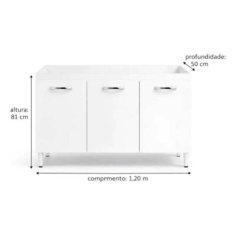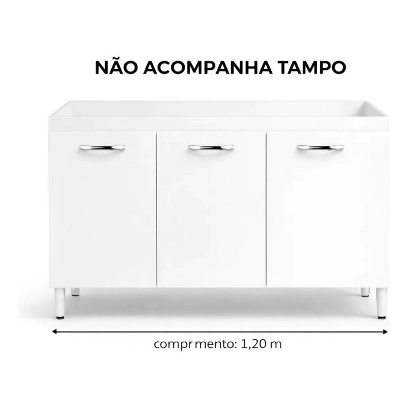 Gabinete Pia Cozinha Balcão Beatriz 3 Portas S/tampo 120cm Branco - MobiliO Balcão de Cozinha Beatriz Branco é a escolha ideal para quem busca funcionalidade e estilo moderno em sua cozinha.Fabricado em MDP, o balcão conta com três portas que proporcionam amplo espaço de armazenamento. As prateleiras internas são ideais para organizar utensílios e mantimentos, mantendo sua cozinha sempre em ordem. As corrediças metálicas garantem durabilidade e um funcionamento suave.Dimensões :Altura: 81 cmComprimento: 1,20 cmProfundiade: 50 cm ;ATENÇÃO ;NÃO ACOMPANHA TAMPO ;Garantia de : 90 dias