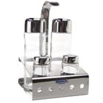 O Galheteiro Brinox da linha Parma possui um design sofisticado para ser levado à mesa em ocasiões especiais. Um item feito em aço inoxidável e vidro com acabamento arredondado para dar um charme às peças. Um produto com fácil encaixe e um moderno sistema corta gotas.