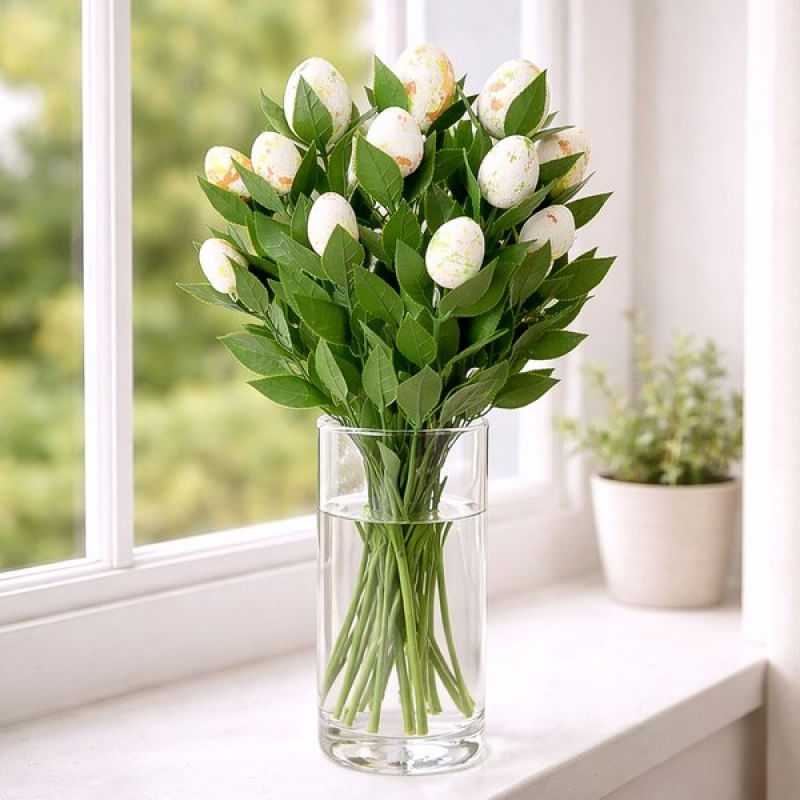 Galho Artificial Decoração Ovos Páscoa Enfeite 50cm Kit 6pçs - Deixe sua decoração de Páscoa ainda mais charmosa com estes lindos galhos artificiais decorado com ovos coloridos. Ideal para compor arranjos, vasos, centros de mesa e decorações temáticas, trazendo um toque delicado e festivo para sua casa, loja ou vitrine Características do produto: Altura aproximada: 50cm Galho artificial decorativo Ideal para vasos, arranjos e centros de mesa Cada galho tem 5 ramos com ovinhos coloridos em cima Conteúdo do pacote: 6x Galhos com ovinhos de páscoa 50cm (NÃO ACOMPANHA VASO OU OUTRO ENFEITE DE PÁSCOA) Características Gerais do Produto: • Material: Plástico • Modelo: Galho de Páscoa • Cor: Verde • Dimensões aproximadas: Altura 50cm Garantia: • Garantia do site - 1 Mês