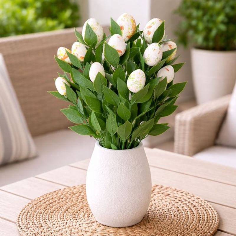 Galho Artificial Decoração Ovos Páscoa Enfeite 50cm Kit 8pçs - Deixe sua decoração de Páscoa ainda mais charmosa com estes lindos galhos artificiais decorado com ovos coloridos. Ideal para compor arranjos, vasos, centros de mesa e decorações temáticas, trazendo um toque delicado e festivo para sua casa, loja ou vitrine Características do produto: Altura aproximada: 50cm Galho artificial decorativo Ideal para vasos, arranjos e centros de mesa Cada galho tem 5 ramos com ovinhos coloridos em cima Conteúdo do pacote: 8x Galhos com ovinhos de páscoa 50cm (NÃO ACOMPANHA VASO OU OUTRO ENFEITE DE PÁSCOA) Características Gerais do Produto: • Material: Plástico • Modelo: Galho de Páscoa • Cor: Verde • Dimensões aproximadas: Altura 50cm Garantia: • Garantia do site - 1 Mês