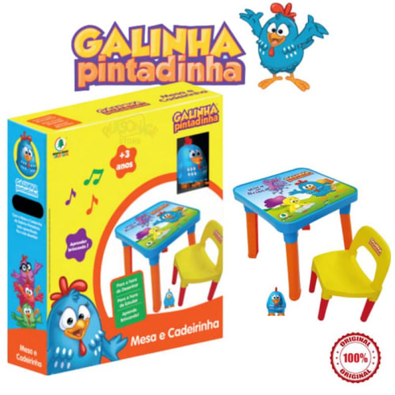 Mesa e Cadeira - Galinha Pintadinha - MONTE LIBANOCom a Mesa e Cadeira Infantil, as crianças vão ficar muito mais animadas para brincar e fazer atividades! Ideal para brincar, estudar ou mesmo utilizar para o lanche ou outras atividades Detalhes: Certificação: Certificado Pelos Órgãos Autorizados - OCP`S(Organismos De Certificação De Produtos) Registro:004037/2021 OCP:0006Características: Conteúdo da Embalagem: 1 Mesa, 1 Cadeira e 2 Bonecos Material/Composição: Polipropileno e Plástico Ref: 0360 Marca: Monte Líbano Modelo: Galinha Pintadinha Idade Indicada: 3+ Código de Barras: 7896744803600 Altura Aproximada da Embalagem (A x L x C): 58cm x 14cm x 50cm Aviso: As cores podem variar entre as imagens mostradas acima e o produto Imagens meramente ilustrativas Garantia: 3 Meses Contra Defeito de Fabricação