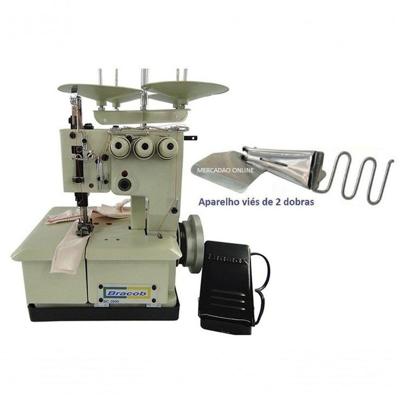 Galoneira 3 Agulhas Semi Industrial C/ Motor + Aparelho Viés Voltagem:220v Máquina de Costura Galoneira Semi Industrial BRACOB - 3 AgulhasCom pedal Eletronico e nova trava de calcadorIndicada para fazer acabamentos em camisetas, lingerie, cuecas, viés(debrum) e rebatimento de elásticos.Excelente máquina de costura para tecidos leves e médios, e até grossos como moletom, faz barras e colaretesProduto , fabricado por uma empresa 100% BrasileiraCostura com 1, 2 ou 3 agulhasMotor acoplado à máquinaAcompanha Pedal aceleradorLubrificação ManualAgulhas: 03Especificações Técnicas:- Utilização: Semi-Industrial- Base: Plana fechada- Aplicação: Tecidos leves e médios- Sistema de : Simples- Nº de agulhas: 3 (Bitola 1/4 = 6,4mm)- Tipo de agulha: B-63 ou UYx128- Marca: BRACOB- Modelo: BC-2600-3- Nº de fios: 4- Tamanho do ponto: de 1 á 4mm- Sistema de lubrificação: Manual- Tipo: Acoplado ao cabeçote (máquina)- Potência: 250 Watts- Utilizada para fazer barras, pregar golas, mangas e punhos em camisetas- Furação para aparelhos de viés, barra e viés sobreposto- Pode ser usada com menos agulhas/fios, dependendo do trabalho a realizar110 VOLTS ou 220 VOLTS (Selecione ao comprar)Garantia: 3 Meses BalcaoNÃO ACOMPANHA MESA