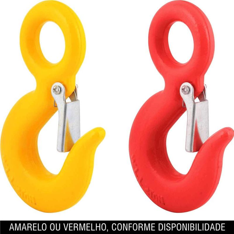 Gancho de aço com Olhal, 2,0 Toneladas, 7/16", com Trava, Vonder OstenVonder - Conteúdo da embalagem: 1 Gancho de aço com olhal. Aplicação: Utilizado como elemento de conexão em cabos de aço, lingas de correntes, cintas de poliéster, entre outros. Recomendado para uso leve. Não deve ser usado para movimentação de cargas, como: tração, elevação ou estaiamento de torres. Destaques: Possui tratamento pintado que proporciona maior resistência à oxidação/corrosão. Referência: 3569100020 Garantia - E (CDC): Garantia legal: 90 dias Material: Aço forjado Medida do gancho olhal: 7/16" - 11,1 mm Carga de trabalho do gancho olhal: 2,0 tf Diâmetro interno do olhal do gancho (A): 30,5 mm Abertura do gancho olhal (B): 34,1 mm Comprimento total do gancho (D): 162 mm Fator de segurança do gancho olhal: 4:1 Massa aproximada (peso): 0,59 kg Destaques Comercial: Possui pintura que aumenta a resistência à oxidação e corrosão. Aplicação Comercial: Elemento de conexão para cabos, correntes e cintas. Uso leve, não indicado para tração ou elevação. Características Gerais do Produto: Garantia: • 3 Meses