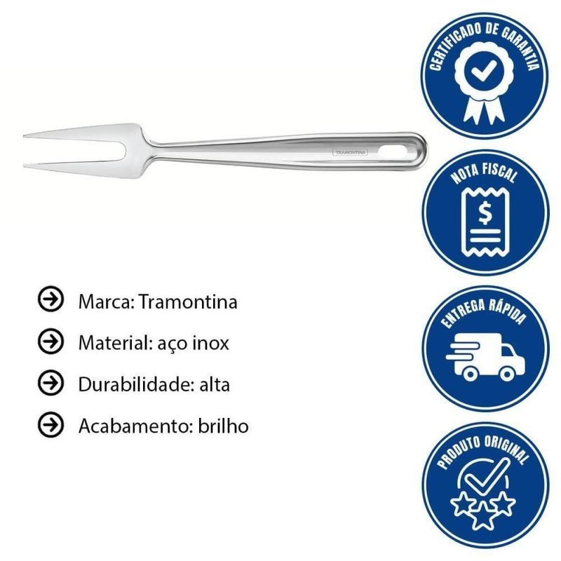 Garfo Trinchante Tramontina Extrata Para Carnes 31cm Em Aço Inox Acabamento Brilho 63815471- Prepare-se para cortes precisos e saborosos com o Garfo Trinchante Tramontina Extrata para Carnes.- Fabricado em aço inox, este garfo é ideal para trinchar carnes com facilidade e , garantindo durabilidade e performance superior na sua cozinha.- Perfeito para entusiastas da culinária que valorizam qualidade e eficiência em cada detalhe.GARFO TRINCHANTE TRAMONTINA EXTRATA PARA CARNES 31CM EM AÇO INOX ACABAMENTO BRILHO 63815471Marca: TramontinaModelo: Extrata Em Aço Inox Acabamento Brilho Para Carnes 63815/471DESCRIÇÃO DO GARFO TRINCHANTE TRAMONTINA EXTRATA PARA CARNES- Todo bom cozinheiro reconhece a importância de ter utensílios que proporcionem facilidade no dia a dia da cozinha.- Com o Garfo Trinchante Tramontina para Carnes em Aço Inox Acabamento Brilho você poderá realizar preparos perfeitos.- O garfo da linha Extrata leva toda a qualidade, durabilidade e beleza do aço inox, além disso, o seu furo permite que você possa incluí-lo na decoração da sua cozinha, trazendo um ar de modernidade, elegância e sofisticação.INFORMAÇÕES DO GARFO TRINCHANTE TRAMONTINA EXTRATA PARA CARNES- Totalmente feito de aço inox, por isso não solta nenhum resíduo nos alimentos, mantendo-os saudáveis.- Altamente durável, mantém suas características , preservando a beleza, a higiene e a durabilidade do material.- Possui furo no cabo, o que permite incluí-la na decoração da cozinha.-Pode ser lavado diariamente na máquina de lavar louças.ORIENTAÇÕES DO GARFO TRINCHANTE TRAMONTINA EXTRATA PARA CARNES- Durante a lavagem, use apenas sabão ou detergente e uma esponja macia.- Outros tipos de produtos, como palha de aço, poderão riscar ou prejudicar o brilho dos talheres.- Enxágue bem cada peça a fim de remover totalmente os resíduos dos produtos de limpeza, pois, por serem abrasivos, podem prejudicar o inox. - Sempre que possível, use água quente, pois renova o brilho do talher.- Após a lavagem, enxugue imediatamente os talheres, caso contrário, as substâncias químicas da água (cloro) poderão causar manchas.- Evite atrito entre os talheres durante o processo de lavagem e no armazenamento, para mantê-los sem riscos.- Evite o das peças com superfícies quentes. Elas provocam a descoloração do produto.- Não guarde os talheres em locais úmidos. A umidade também provoca manchas.- Ao usar a lava-louça, recomendamos retirar os talheres logo que tenha terminado o ciclo ''enxaguar'', a fim de que sejam secados manualmente.PESO- 0.07 kgGARANTIA- 90 dias de garantia legal para vícios ou de fabricação.DIMENSÕES- Dimensões da embalagem (Compr. X Larg. X Alt.): 44 x 34 x 310 mm- Dimensões do produto (Compr. X Larg. X Alt.): 311 x 44 x 33 mmPERGUNTAS FREQUENTES:1. Posso utilizar o Garfo Trinchante Tramontina Extrata para Carnes em máquina de lavar louças?Sim, o garfo pode ser lavado diariamente na máquina de lavar louças, garantindo praticidade na limpeza após o uso.2. Como devo realizar a limpeza do Garfo Trinchante Tramontina Extrata para Carnes à mão?Para uma limpeza manual, recomenda-se usar apenas sabão ou detergente neutro com uma esponja macia. Evite palha de aço ou produtos abrasivos que possam danificar o brilho do aço inox.3. O que significa o furo no cabo do Garfo Trinchante Tramontina Extrata para Carnes?O furo no cabo não só proporciona um design moderno e elegante, como também permite que o garfo seja pendurado, facilitando sua organização e inclusão na decoração da cozinha.4. Como posso prolongar a vida útil do Garfo Trinchante Tramontina Extrata para Carnes?Evite o dos talheres com superfícies quentes, não os guarde em locais úmidos e seque imediatamente após a lavagem para evitar manchas e prolongar a durabilidade do produto.5. Qual é a garantia oferecida para o Garfo Trinchante Tramontina Extrata para Carnes?O garfo possui garantia de 90 dias para vícios ou de fabricação, assegurando a qualidade e confiança da Tramontina em seus produtos. Linha: Extrata Aço Inox Brilho Para Carnes | Material da lâmina: Aço inoxidável | Material do Punho: Aço inoxidável | Tipo de garfo: Trinchante | Comprimento total: 31,1 cm | Apto para lava-louças: Sim | Kit de : não | quantidade itens: 1 | cor: inox, prata | Cubagem: 0.001600 | EmbalagemLargura-cm: 10 | Marca: Tramontina | EmbalagemComprimento-cm: 32 | Peso Líquido: 0.0000 | Modelo: Extrata Aço Inox Brilho Para Carnes | Dias Fornecedor: 0 | EmbalagemAltura-cm: 5