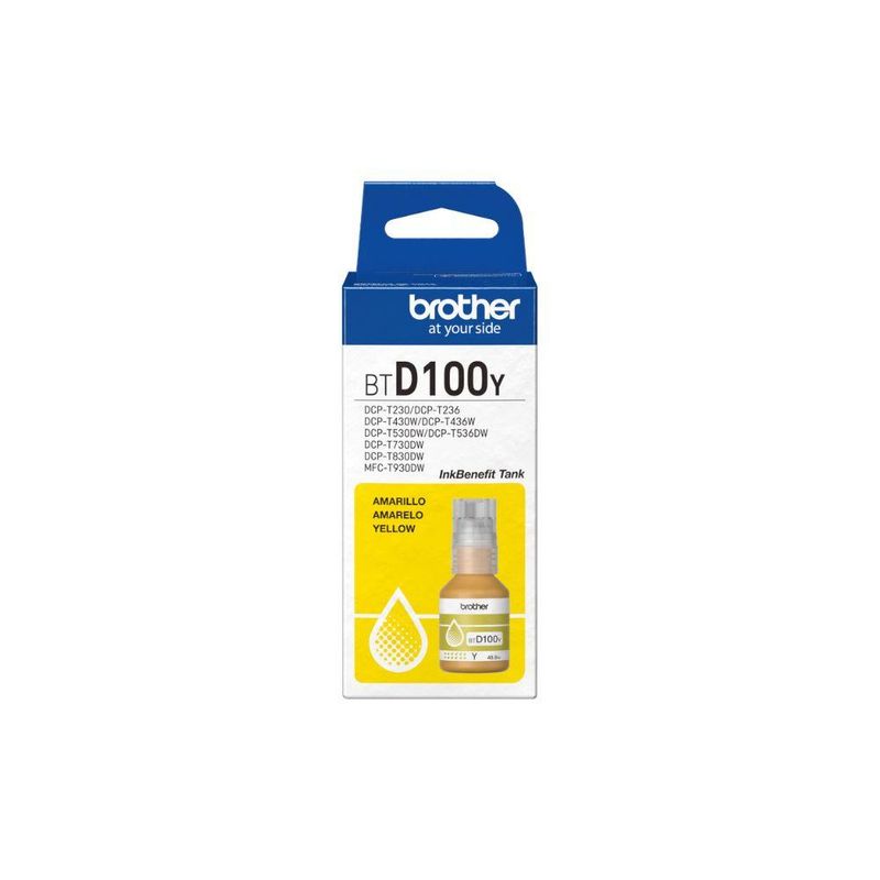 Características: - Marca: Brother - Modelo: BTD100Y - Cor: Amarelo Dê vida às suas impressões com o amarelo vibrante da Brother! Ideal para quem busca alta performance, economia e resultados duradouros. - Volume da tinta: 48,8 ml - Tipo de produto: Garrafa de tinta (refil) - Instalação: Fácil, rápida e sem sujeira graças ao design anti-derramamento - Rendimento: Até 5.000 páginas (conforme padrão ISO/IEC 24712) - Tecnologia: Tinta original Brother, com fluxo consistente e excelente cobertura de cor - Compatibilidade: DCP-T230, DCP-T430W, DCP-T436W, DCP-T530DW, DCP-T730DW, DCP-T830DW, MFC-T930DW - Alta performance: Funciona em total sintonia com impressoras da linha InkBenefit Tank - Qualidade duradoura: Impressões nítidas e resistentes ao tempo - Confiança: Mantém o desempenho ideal da impressora e prolonga sua vida útil - Recomendação do fabricante: Utilize sempre suprimentos originais Brother - Conteúdo da embalagem: 01 garrafa de tinta Brother BTD100Y (Amarelo) - Dimensões aproximadas: 10,7 × 5,2 × 5,0 cm - Peso aproximado: 136 g - Garantia: 12 meses