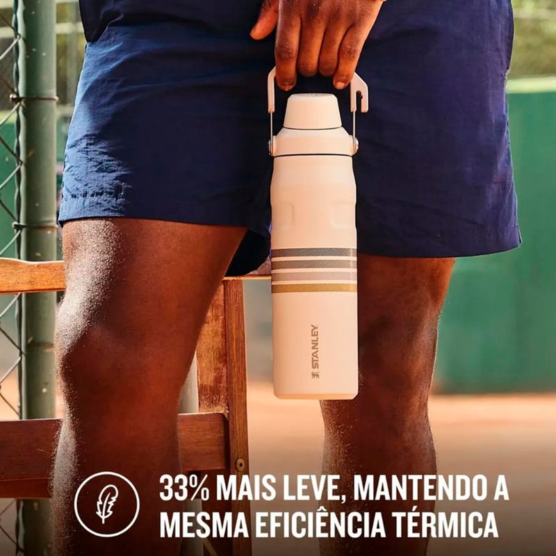 Garrafa Térmica Aerolight Fast Flow Varsity Cream Ash Stripes 710ml - Stanley R8480 (Produto Original) MAIS LEVE PARA VOCÊ IR MAIS LONGE A garrafa térmica Aerolight™ Fast Flow é estilosa, moderna e prática para sua hidratação. Perfeita para treinos intensos, para levar à faculdade ou ao trabalho e para diferentes momentos do seu dia. O corpo mais leve mantém a mesma eficiência térmica que garante sua bebida sempre na temperatura ideal. A Aerolight™ Fast Flow é a garrafa da vida em movimento, pois é feita com a nova tecnologia de aço 33% mais leve e conta com uma tampa removível que pode ser encaixada em qualquer lugar. A tampa à prova de vazamentos também facilita o fluxo de água e limpeza. Escolha a cor que mais combina com o seu estilo e garanta a alta performance com leveza em cada gole da sua hidratação diária. O isolamento a vácuo de parede dupla mantém as bebidas geladas durante 10 horas e frias até 2 dias Produto com selo de autenticidade Stanley Características do Produto: Marca: Stanley Código/Ref.: 8480 Modelo: Garrafa Térmica Aerolight Varsity Cor da garrafa: Cream com alça Ash Capacidade: 710ml É térmica: Sim Tempo de conservação frio: 10 hrs Tempo de conservação com gelo: 2 dias Uso com bebidas quentes: Não recomendado para bebidas quentes Tipo de tampa: Fast Flow Livre de BPA: Sim Uso: Seguro na lava-louças Compatível com porta-copos do carro: Sim Diâmetro: 8 cm Altura: 28,2 cm Largura: 10 cm Peso: 400 gramas Composição: Inox, PP, silicone Garantia: Garantia vitalícia contra defeitos de fabricação nos materiais (verificar política) Prazo de validade: Indeterminada Imagens Meramente Ilustrativas