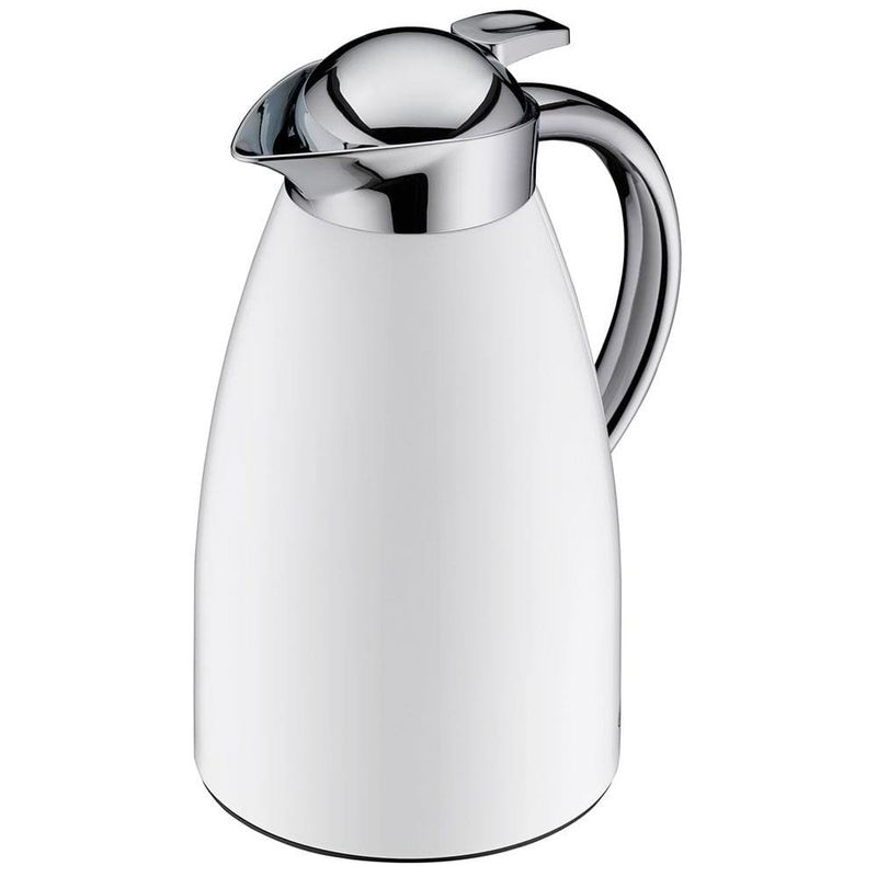 Essa incrível Garrafa Térmica Signo da Alfi é indispensável para quem ama café e sempre está em busca de melhorar a experiência de degustar essa bebida a qualquer hora do dia!Essa garrafa térmica é perfeita para quem ama tomar um café ou chá fresquinho durante o dia, pois ela mantém a temperatura interna por até 12 horas, possibilitando que sua bebida fique quente por muito mais tempo! Ela possui estrutura em Alumínio laqueado de grande durabilidade e ampola interna dupla com revestimento em vidro temperado AlfiDur que retém a temperatura estável de forma duradoura.Com um design elegante e sofisticado graças ao acabamento cromado da tampa e da alça, a Garrafa Térmica Signo também possui sistema de fechamento Easy, onde basta apertar o botão superior para liberar o conteúdo. Esse detalhe não só evita perda de calor interno, como também adiciona muito mais charme para a garrafa, dando um toque especial e moderno no seu cantinho do café.