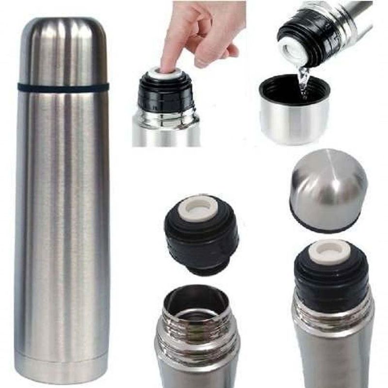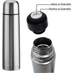 Garrafa Térmica Inox 500 Ml InquebrávelDescrição do produtoGarrafa Inox com TampaEscolar Camping Trabalho Faculdade ViagemFuncionamentoÓtima pra levar para a academia, Escola, Faculdade,camping, trabalho e até para ser utilizada em sua própria cozinhaEla é completamente desmontável,para fins de limpeza, o que a torna extremamente higiênica.A garrafa possui uma abertura grande em sua boca, o que permite a passagem de cubos de gelo.Características do produto:- Material: Aço Inoxidável; (a temperatura sendo fria ou quente pode ser sentida ao encostar na parede da garrafa - o que facilita o reconhecimento do conteúdo e a sua temperatura)- Material Inquebrável;- Dupla Camada Com Vácuo Entre ambas; (ela não substitui a funcionalidade das garrafas termicas de uso caseiro)- Conserva a temperatura por até 4 horas- Design Inovador e Moderno;Dimensões:Altura: 32 cmDiâmetro: 8 cmCapacidade: 500ml