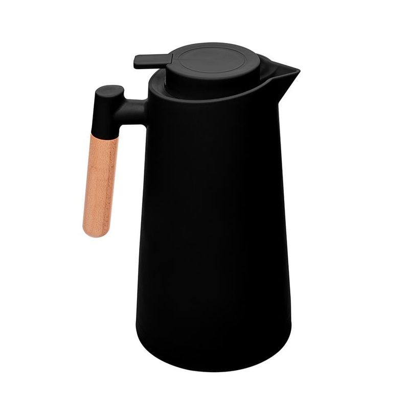 Garrafa Térmica Escandinávia Preta 1L da Lyor, design contemporâneo e funcionalidade térmica avançada, mantem suas bebidas na temperatura ideal por mais tempo e com muito estilo.Seu corpo em plástico resistente com acabamento preto fosco contrasta harmoniosamente com o cabo de madeira natural, que garante firmeza e conforto ao manuseio. Ideal para servir café, chá ou água com elegância em casa, no escritório ou em reuniões especiais. Com capacidade de 1 litro, a garrafa mantém líquidos quentes por até 12 horas e frios por até 24 horas. Uma escolha versátil para quem busca praticidade e bom gosto.Eficiência térmica: mantém quente por 12h e frio por 24hCabo de madeira: toque natural e confortávelDesign escandinavo: moderno e eleganteCapacidade de 1 litro: ideal para o uso diárioA Garrafa Térmica Lyor Escandinávia une durabilidade, beleza e desempenho. Uma peça indispensável para quem aprecia funcionalidade com sofisticação.