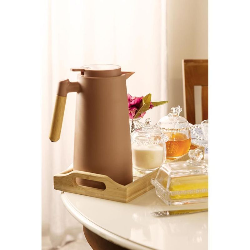 A Garrafa Térmica Tap Nude 1L da Lyor com Termômetro Digital mescla funcionalidade térmica e design sofisticado. Com acabamento nude e cabo em madeira, ela adiciona um toque escandinavo e moderno à sua rotina, seja no trabalho, em casa ou em encontros especiais. Com capacidade para 1 litro, essa garrafa permite armazenar e servir bebidas quentes ou frias com eficiência. Graças ao seu sistema de isolamento térmico, mantém o conteúdo aquecido por até 12 horas ou refrigerado por até 24 horas, garantindo o sabor e a temperatura ideais por muito mais tempo.O grande diferencial está no termômetro digital embutido na tampa, que permite visualizar a temperatura da bebida em tempo real. Essa funcionalidade traz mais controle e praticidade, especialmente para chás, cafés e bebidas que exigem temperaturas específicas. Seu cabo em madeira oferece um manuseio firme e confortável, além de reforçar o apelo estético da peça. Ideal para compor mesas elegantes ou para uso diário com um toque de design contemporâneo. Termômetro embutido: controle da temperatura em tempo real Conserva quente por até 12h e frio por até 24h Design escandinavo com acabamento nude e cabo de madeira Tampa hermética: evita vazamentos e mantém a vedação Com a Garrafa Térmica Lyor Tap Nude 1L, cada gole é uma experiência de conforto e estilo.