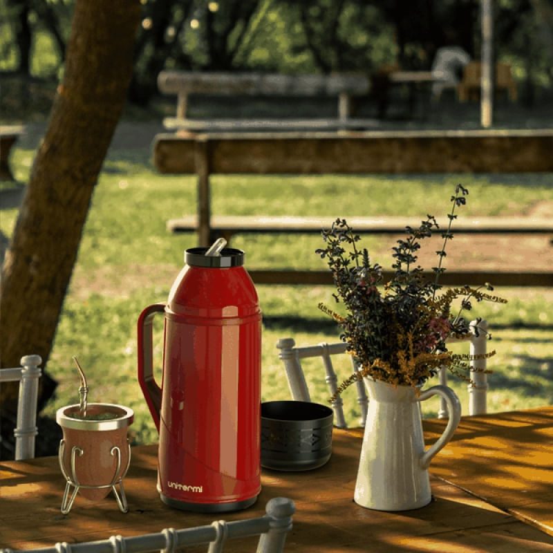 Garrafa Térmica Mesa Roma Tradição Vermelha 1L Chá Chimarrão - Elegância e sofisticação, algumas das inúmeras qualidades encontradas em nossa Garrafa térmica luxuosa. Elaborada para uso em qualquer ambiente, a linha Roma possui tampa copo, sistema antigota, alça reforçada, design moderno e atual. Preservando as qualidades da Roma, a linha tradição busca facilitar ainda mais o cotidiano, com sua tampa de dupla função. Além da função tampa rolha, ela dispõe de bico dosador, simplicidade e praticidade no dia-a-dia. Descubra a combinação perfeita de funcionalidade e elegância com a garrafa térmica arredondada, projetada para os amantes de café que valorizam o sabor e a temperatura da sua bebida em todos os momentos, esta garrafa térmica é a companheira ideal para suas aventuras diárias.Com alça arredondada, grande base de apoio, superfície polida e acabamento em alto brilho, o modelo não dispensa beleza, qualidade e conforto em seu uso.O sistema de fechamento com rosca que garante a conservação térmica padrão das garrafas.A conservação da temperatura do líquido é garantida por 4 horas aproximadamente (4 horas), podendo variar de acordo com a temperatura inicial do líquido Especificações: Cor: Vermelho; Volume: 1,0 Litros; Medidas: 27,5cm X 11cm; Qualidade térmica: Líquidos quentes 4 horas / Líquidos gelados 4 horas; Material: Ampola de vidro e demais peças em plástico injetado (PP) Conteúdo da embalagem: 1 Garrafa Térmica Vermelho com 27,5cm de altura e 11cm de diâmetro, 1,0 Litros; !!! A IMAGEM DAS MEDIDAS É APENAS ILUSTRATIVA !!! Características Gerais do Produto: • Material: Plástico; Vidro • Modelo: Garrafa Térmica 1 Litro • Cor: Vermelho • Dimensões aproximadas: Altura 27,5cm X 11cm de diâmetro Garantia: • Garantia contra avarias no transporte
