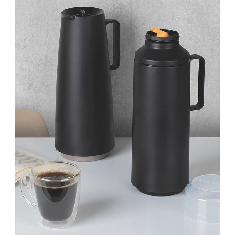 Gosta de degustar um café e chá quentinho ou um suco fresquinho durante o dia? Então conte com a Garrafa Térmica Tramontina Exata Preta de 1 L para conservar a temperatura ideal das suas bebidas por mais tempo. Ela possui ampola de vidro e corpo de polipropileno que a torna extremamente leve e fácil de manusear. Seu bico ergonômico com rolha proporciona precisão na hora de servir, podendo ser em até 360 graus ou de maneira convencional. Com design simples e moderno e vai ocupar menor espaço na hora de guardá-la ou durante o transporte!