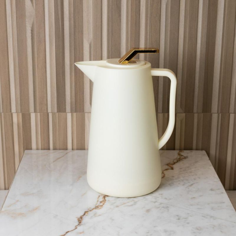 Garrafa Térmica Wolff Atenas de Plástico Bege 1LApresentamos a Garrafa Térmica de Plástico Atenas Bege 1L da Wolff, uma união de praticidade e estilo para manter suas bebidas na temperatura ideal.Design ModernoCom um design contemporâneo e sofisticado, esta garrafa térmica destaca-se pela sua elegância em um tom de bege neutro e versátil.Material DurávelFabricada em plástico de alta qualidade, a garrafa térmica é resistente e durável, garantindo a conservação adequada das suas bebidas.Isolamento Térmico EficienteEquipada com isolamento térmico de qualidade, mantém suas bebidas quentes ou frias por um longo período, sendo ideal para diversas ocasiões.Capacidade IdealCom capacidade para 1 litro, é perfeita para servir bebidas em eventos, reuniões ou para uso doméstico, mantendo-as sempre frescas.Tampa VedadaA tampa vedada proporciona segurança contra vazamentos, preservando o sabor e a temperatura das suas bebidas por mais tempo.Adquira já a sua Garrafa Térmica de Plástico Atenas Bege 1L da Wolff e desfrute de bebidas sempre na temperatura perfeita, com um toque de elegância.Wolff. A excelência em receber, servir e decorar!Contém: 1 Garrafa TérmicaLava Louça: NãoMicroondas: NãoForno: NãoFogão: NãoFreezer: NãoMedidas Produto: Altura 27,00cm x Largura 15,00cm x Comprimento 19,00cmPeso: 0,64KgCor: BegeMaterial: PlásticoÁgua corrente e Sabão.