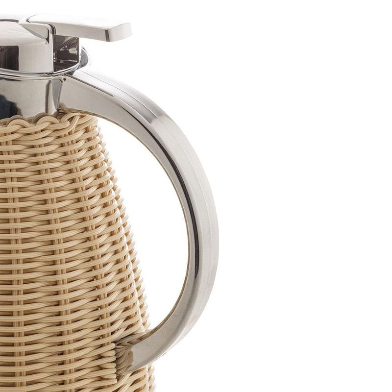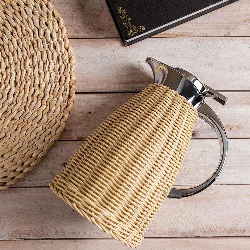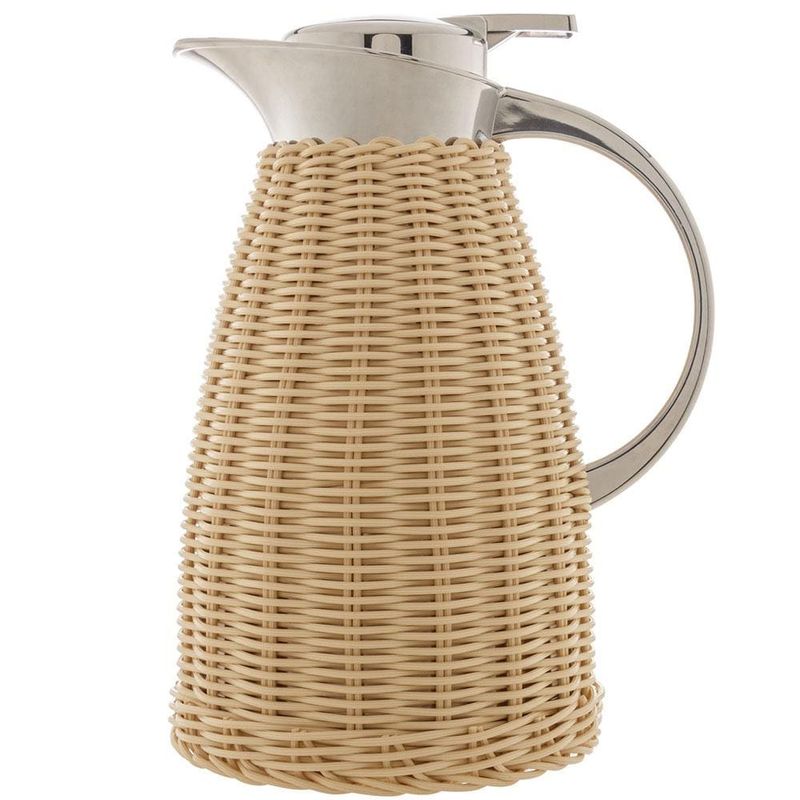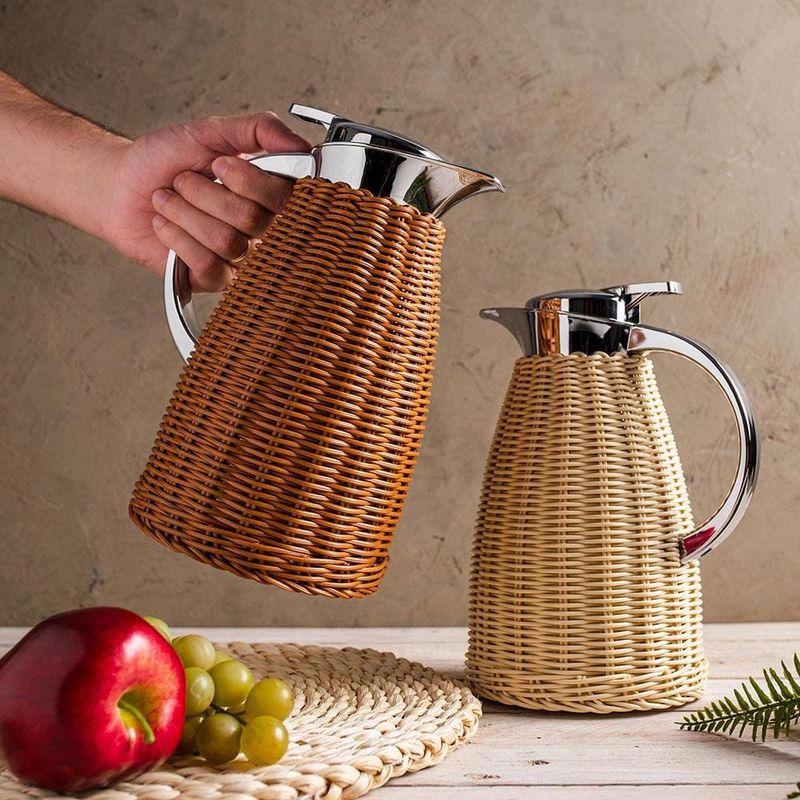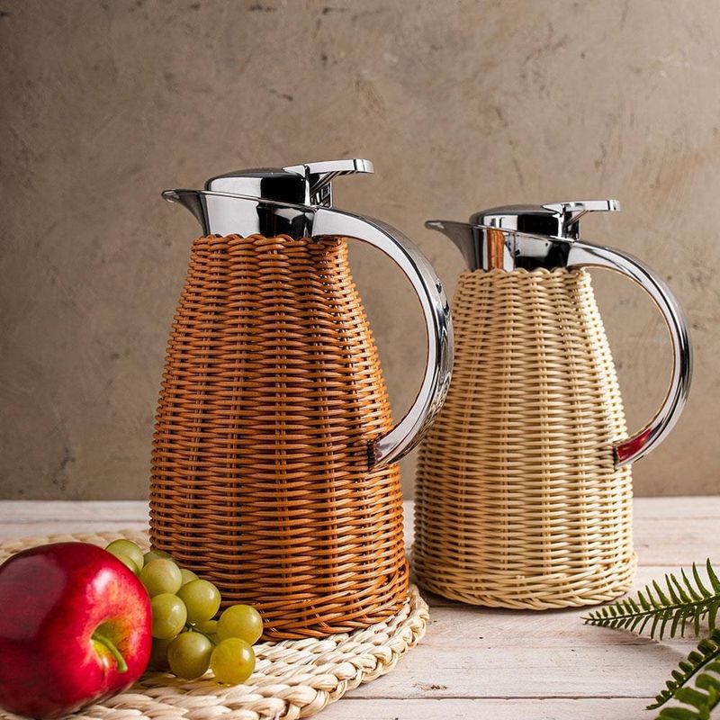 Com um design sofisticado e elegante, a Garrafa Térmica Wolff combina a beleza do vime bege com o brilho do aço inoxidável, proporcionando uma aparência refinada e moderna que certamente irá impressionar seus convidados. O acabamento trançado do rattan oferece ainda mais charme e estilo, tornando essa garrafa térmica uma peça decorativa atraente e versátil que combina bem com qualquer ambiente. Além da aparência, a Garrafa Térmica Wolff com Rattan Bege também é altamente funcional. Sua tecnologia de isolamento térmico mantém suas bebidas quentes ou frias por até 12 horas, permitindo que você desfrute de suas bebidas preferidas com a temperatura perfeita por muito mais tempo. A Garrafa Térmica Wolff possui uma tampa de bico dosador, garantindo que a bebida seja servida sem desperdícios ou derramamentos. Além disso, sua alça resistente permite transportá-la com segurança e conforto para qualquer lugar. Com a Garrafa Térmica Wolff com Rattan Bege, você pode ter a certeza de um produto resistente e de alta qualidade, que oferece um desempenho excepcional! Invista na Garrafa Térmica Wolff com Rattan e desfrute de uma experiência única de conforto e estilo em suas refeições e eventos.