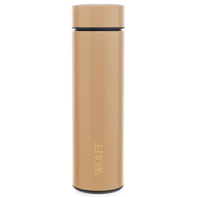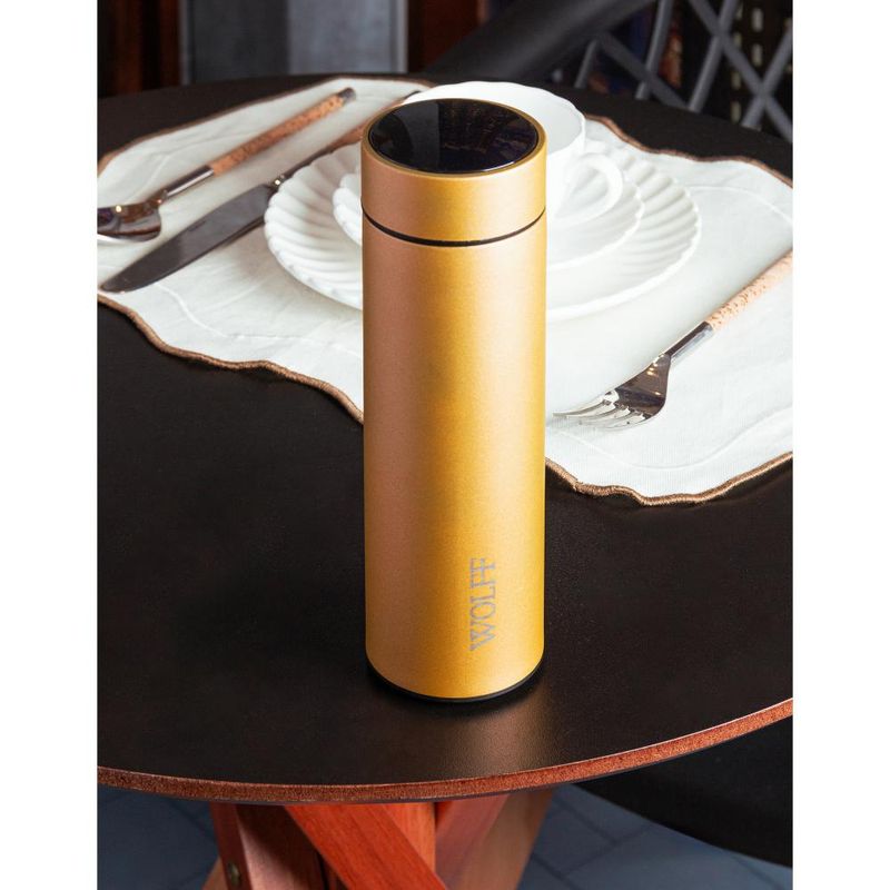 Garrafa Térmica Wolff de Aço Inox Dourada 500ml Contém: 1 Garrafa TérmicaLava Louça: NãoMicroondas: NãoForno: NãoFogão: NãoFreezer: NãoMedidas Produto: Altura 22,50cm x Largura 6,50cm x Comprimento 6,50cmPeso: 0,27KgCor: DouradoMaterial: Aço InoxÁgua corrente e sabão.