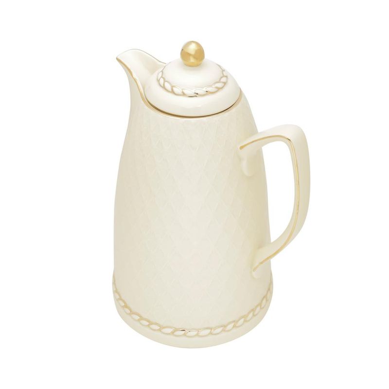 Garrafa Térmica Wolff de Porcelana Renda Creme 900mlApresentamos a Garrafa Térmica de Porcelana Renda Creme 28cm 900ml da Wolff, uma peça que une a delicadeza da porcelana ao encanto do padrão rendado em tom creme, proporcionando uma experiência única ao servir.Design Delicado com Padrão RendadoO padrão rendado em tom creme confere à garrafa térmica um design delicado, adicionando um toque encantador à sua mesa.Porcelana de Alta QualidadeFabricada em porcelana de alta qualidade, a garrafa mantém a temperatura de suas bebidas por mais tempo, enquanto destaca-se pela sua durabilidade e brilho.Capacidade Ideal para Servir com EstiloCom 900ml de capacidade, a garrafa térmica é ideal para servir suas bebidas favoritas com elegância em diversas ocasiões.Tampa com Sistema Prático de ServirA tampa da garrafa conta com um sistema prático que facilita o servir, proporcionando comodidade durante o uso.Desfrute de momentos únicos de servir com a Garrafa Térmica de Porcelana Renda Creme 28cm 900ml da Wolff. Uma escolha que une a tradição da porcelana ao charme do padrão rendado, elevando o padrão em receber.WOLFF. Elevando o padrão em receber, servir e decorar!Contém: 1 GarrafaLava Louça: NãoMicroondas: NãoForno: NãoFogão: NãoFreezer: NãoMedidas Produto: Altura 28,50cm x Largura 16,00cm x Comprimento 20,50cmPeso: 1,60KgCor: BrancoMaterial: PorcelanaCapacidade: 900mlÁgua corrente e sabão.