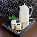 Se você está procurando uma garrafa térmica elegante e funcional para manter suas bebidas quentes ou frias, a Garrafa Térmica Wolff a escolha perfeita para você! Com capacidade para 900ml, esta garrafa térmica é feita de porcelana de alta qualidade e apresenta um acabamento em renda que dá um toque de charme à sua mesa. Seu design clássico e atemporal combina com qualquer decoração e pode ser usado em diversas ocasiões, como almoços em família, jantares com amigos, eventos corporativos e muito mais. Além de ser uma peça elegante e decorativa, está garrafa térmica também é extremamente eficiente na conservação de temperatura. Se você deseja uma garrafa térmica que alie beleza e praticidade, a Garrafa Térmica Wolff em Porcelana Renda é a escolha certa. Adquira já a sua e desfrute de bebidas quentes ou frias por muito mais tempo, com muito estilo e elegância!