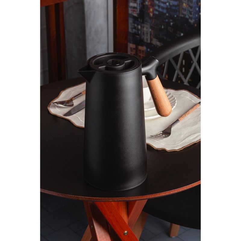 Garrafa Térmica Wolff Nórdica de Plástico com Cabo Preta 1LApresentamos a Garrafa Térmica de Plástico com Cabo de Madeira e Termômetro Nórdica Preta 1L da Wolff, uma peça elegante e funcional para manter suas bebidas na temperatura ideal por horas a fio.Design ModernoCom um design contemporâneo e sofisticado, esta garrafa térmica combina perfeitamente funcionalidade e estilo, adicionando um toque de elegância à sua mesa.Material DurávelFabricada em plástico de alta qualidade, garante durabilidade e praticidade no uso diário, sendo ideal para servir chá, café, suco ou água em diversas ocasiões.Cabo de MadeiraO cabo de madeira não apenas confere um visual refinado, mas também facilita o transporte e manuseio da garrafa, proporcionando conforto e segurança.Termômetro IntegradoEquipada com um termômetro, permite monitorar facilmente a temperatura das bebidas, assegurando que sejam servidas na temperatura perfeita.Capacidade IdealCom capacidade para 1 litro, é perfeita para compartilhar suas bebidas favoritas com amigos e familiares em encontros e eventos especiais.Adquira já a sua Garrafa Térmica de Plástico com Cabo de Madeira e Termômetro Nórdica Preta 1L da Wolff e desfrute de bebidas sempre na temperatura perfeita.Wolff. A excelência em receber, servir e decorar!Contém: 1 Garrafa TérmicaLava Louça: NãoMicroondas: NãoForno: NãoFogão: NãoFreezer: NãoMedidas Produto: Altura 25,00cm x Largura 13,00cm x Comprimento 20,50cmPeso: 0,64KgCor: PretoMaterial: PlásticoÁgua corrente e sabão.