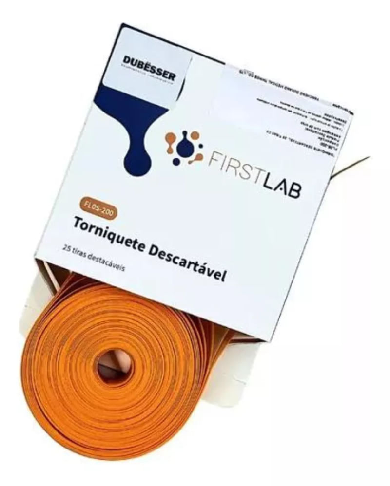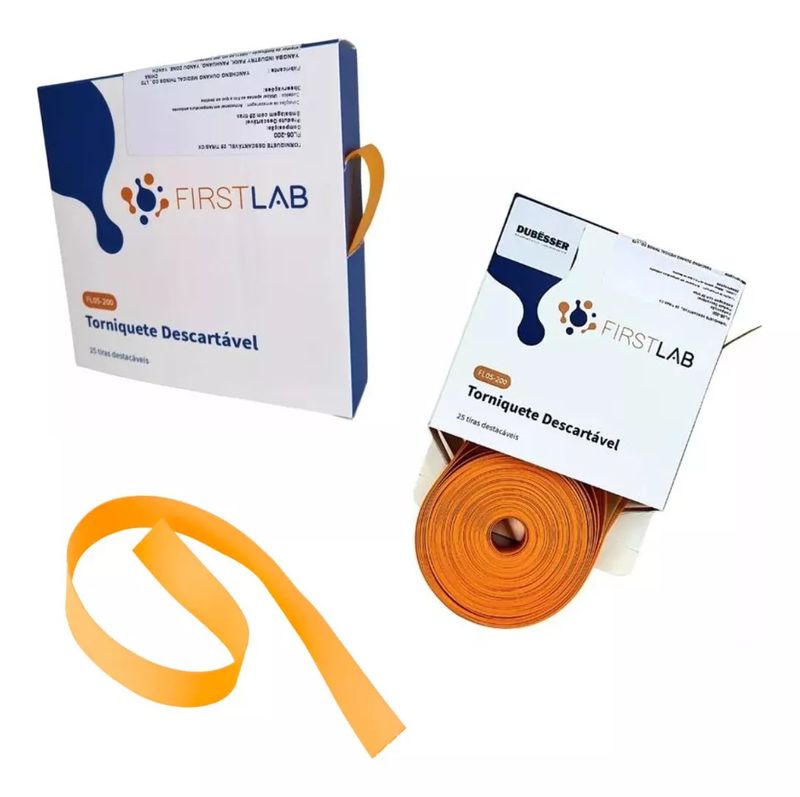 TORNIQUETE DESCARTÁVEL. 25 TIRAS/CXAplicação:Os torniquetes são utilizados para a constrição e controle da circulação sanguínea em procedimentos de coleta de sangue.Características:Fabricado em elastômetro termoplástico;Livre de látex;25 Tiras destacáveis a cada 38 cm;Tamanho: 2 cm x 38 cm;Uso único.Apresentação:Caixa com 25 tirasRegistro ANVISA n°: 81628880030Modelo: FL05-200Marca: Firstlab