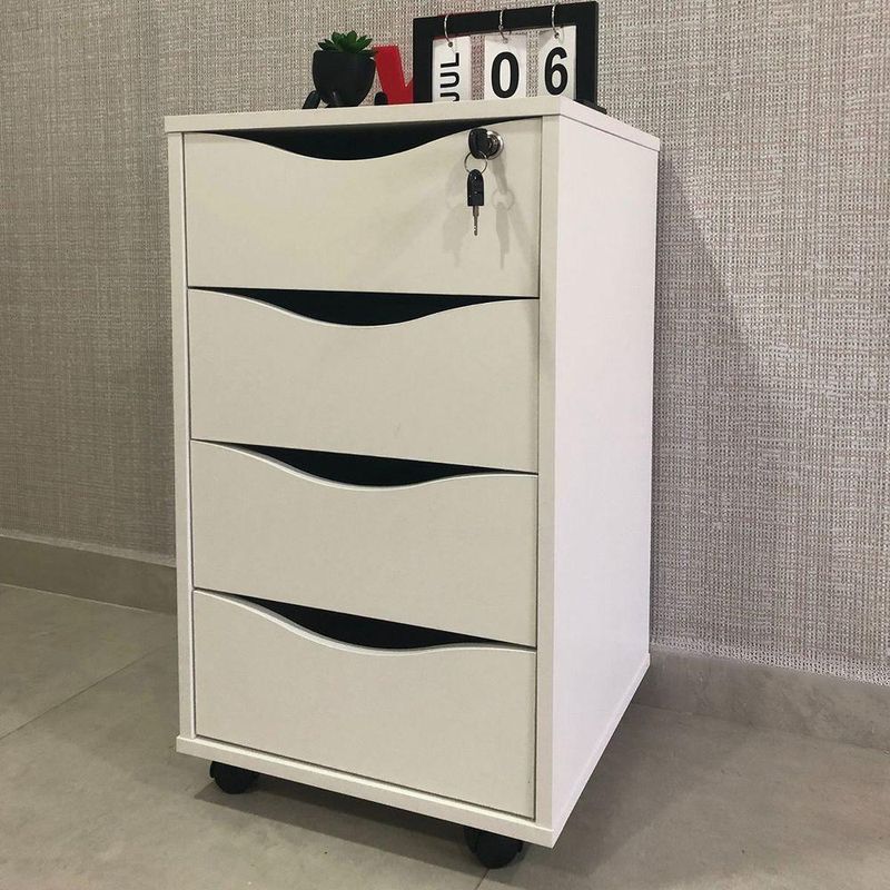 Gaveteiro 4 Gavetas Com Chave E Rodízios Pit BrancoPrecisando de um gaveteiro compacto, de fácil mobilidade e que ofereça segurança e modernidade ao ambiente? Aqui na Casa Chick temos os melhores modelos! Venha conferir e aproveite!Dimensões do Gaveteiro 4 Gavetas com Chave e Rodízios Pit:- Altura: 69,5 cm;- Largura: 40 cm;- Profundidade: 40 cm;Características do Gaveteiro 4 Gavetas com Chave e Rodízios Pit:- Estrutura em MDP 15mm de espessura com fita de borda PVC com 0,45mm de espessura;- Fundo das gavetas em MDF de 3mm de espessura;- Fundo do gaveteiro em MDF de 3mm de espessura;- 4 Gavetas com corrediças metálicas de 350mm;- Rodízios em PVC com 55mm de altura e fixação por pino de aço;- Não acompanha objetos decorativos;- Montagem por conta do comprador;- Não nos responsabilizamos pela montagem dos produtos. Todos os produtos acompanham acessórios para que sejam montados.- Não nos responsabilizamos, no ato da entrega, por subir escadas/elevadores ou transporte por guincho em apartamentos. Eventuais despesas são de responsabilidade do comprador;- Confira as dimensões deste produto e certifique-se de que passará normalmente por supostos elevadores, portas, escadas e/ou corredores de sua residência;- Não aceitamos devolução de produtos com caixas violadas ou materiais danificados, confira a quantidade de volumes e se o que está sendo entregue corresponde com a mercadoria adquirida, não aceitamos devolução após o prazo de arrependimento de 7 dias corridos.Características Gerais do Produto: - Altura: 69,5 cm - Gavetas: 4 Gavetas com Corrediças Metálicas - Ideal para: Escritórios/Salas/Quartos - Informações Adicionais: Não Acompanha Objetos Decorativos; - Largura: 40 cm - Material: MDP - Pintura: Possui Rodízios em PVC; Possui Chave que Trava a Primeira Gaveta; Capacidade de Carga até 8kg Bem Distribuído; - Profundidade: 40 cm - Acabamento: Acabamento em BP - Informações Adicionais: - Não nos responsabilizamos pela montagem dos produtos. Todos os produtos acompanham acessórios para que sejam montados. - Não nos responsabilizamos, no ato da entrega, por subir escadas/elevadores ou transporte por guincho em apartamentos. Eventuais despesas são de responsabilidade do comprador; - Confira as dimensões deste produto e certifique-se de que passará normalmente por supostos elevadores, portas, escadas e/ou corredores de sua residência; - Não aceitamos devolução de produtos com caixas violadas ou materiais danificados, confira a quantidade de volumes e se o que está sendo entregue corresponde com a mercadoria adquirida, não aceitamos devolução após o prazo de arrependimento de 7 dias corridos.Acompanha o produto: - 1 x Gaveteiro 4 Gavetas com Chave e Rodízios Pit - Manual de Montagem - Acessórios de MontagemGarantia: - 3 Meses