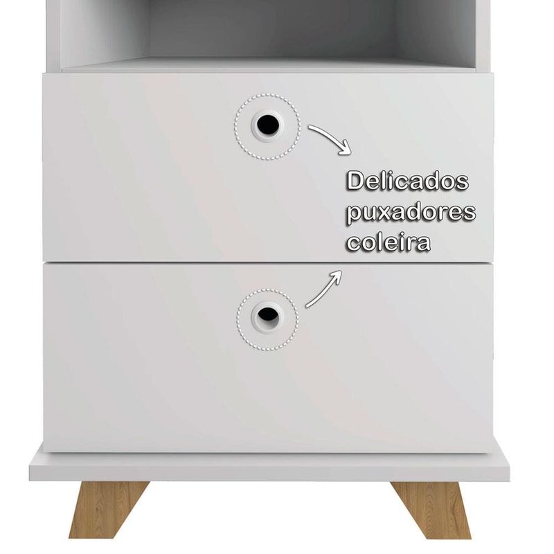 Perfeito para organizar e decorar, o Gaveteiro Day da Artany encanta à primeira vista com seu gracioso desenho, destacado pelos delicados pezinhos no estilo retrô e simpáticos puxadores embutidos.A harmônica combinação de cores é leve e sutil, possibilitando ao produto ser usado em Home Office, quarto, escritório, ou qualquer cantinho, sem pesar na decoração. Com certeza este produto ficará um charme como mesa de cabeceira/criado mudo também. São 2 gavetas com corrediças metálicas e um nicho para você guardar seu material.Torne seu espaço mais agradável com este móvel charmoso, útil e de excelente qualidade!