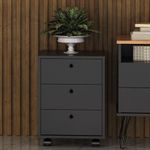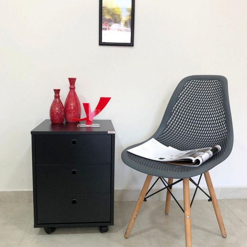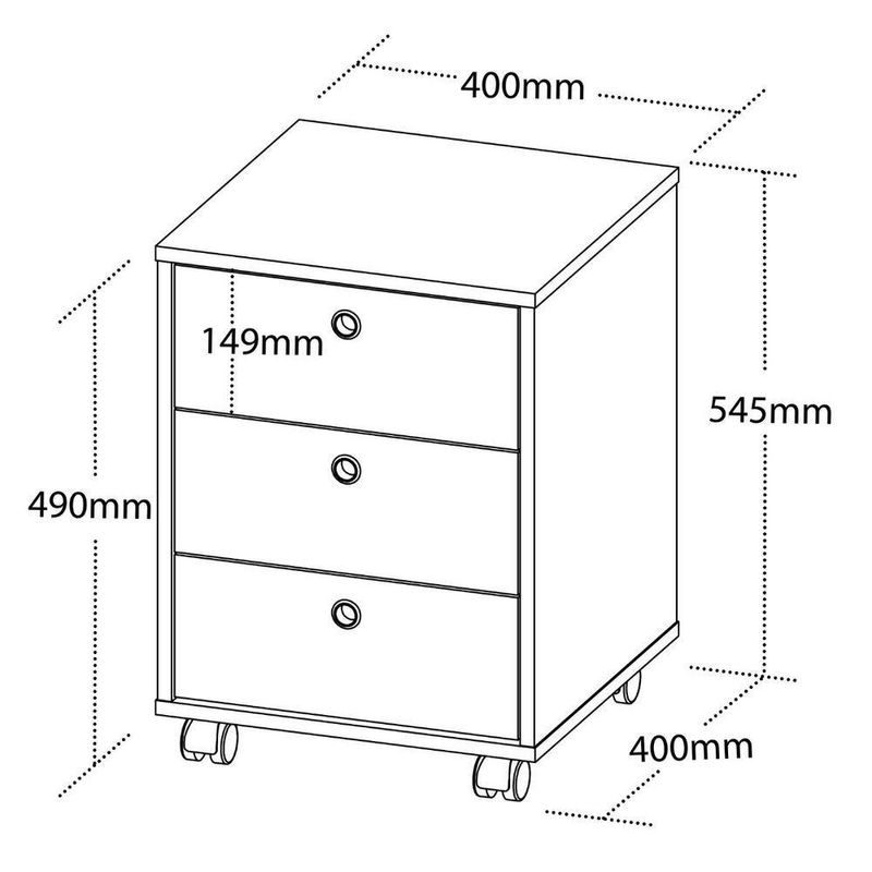 Gaveteiro Com Rodinhas New PretoGaveteiro Com Rodinhas New Preto - Gaveteiro com 3 gavetas e rodinhas.Gaveteiro New Branco: Conquiste a leveza que você sempre quis para o seu espaçoImagine um móvel capaz de transformar a atmosfera do seu ambiente, trazendo a sensação de paz e amplitude que só o branco proporciona. O Gaveteiro New Branco é a escolha perfeita para quem busca criar um refúgio de tranquilidade e bem-estar, sem abrir mão da organização e do estilo.Um convite à organização e à serenidadeSuas três amplas gavetas acomodam tudo o que você precisa, desde documentos importantes até peças de roupa delicadas, mantendo tudo em ordem e ao seu alcance, sem ocupar muito espaço visual. A estrutura em MDP de 15mm com revestimento em BP garante a robustez e durabilidade que você procura em um móvel, enquanto as bordas em PVC adicionam um toque de sofisticação e proteção extra.Praticidade para um dia a dia mais leveE para completar, a praticidade das quatro rodinhas permite que você o mova facilmente para qualquer lugar da casa, adaptando o ambiente às suas necessidades. Leve, versátil e cheio de estilo, o Gaveteiro New Branco é a escolha perfeita para quem busca um lar mais organizado, harmonioso e acolhedor. Deixe a energia fluir livremente em um ambiente onde a paz e a organização reinam.Características Gerais do Produto:- Acabamento: BP- Acompanha Manual: Sim- Altura (cm): 54,5 cm- Largura (cm): 40 cm- Profundidade (cm): 40 cm- Peso (Kg): Peso Montado: 11,9 kg- Capacidade de Carga: 8Kg distribuidos no tampo5Kg nas gavetas- Acabamento da Fita Borda: Fita de borda em PVC- Corrediças: Metálicas- Matéria-prima: Estrutura em MDP 15mm com fita de borda em PVC- Quantidade de gavetas: 3- Sistema de montagem: Fixação com Tambor e parafuso minifix- Garantia: 3 meses- Recomendações: Limpeza com pano levemente umedecido.Acompanha o produto:- 1 Gaveteiro New 1 ManualGarantia:- 3 Meses