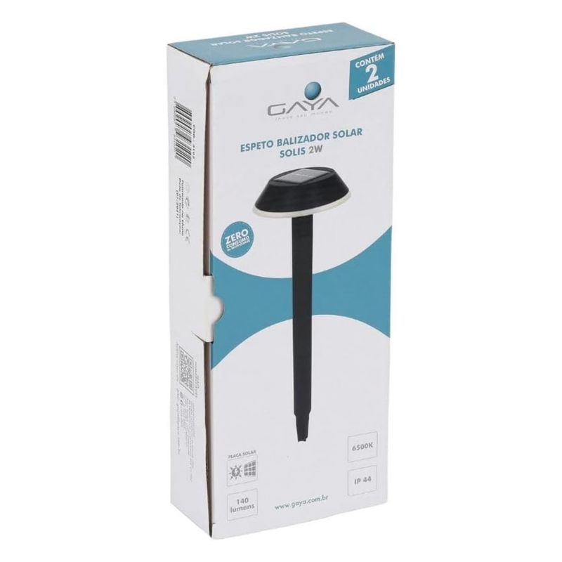 O Espeto Balizador Solar Solis 2W da Gaya é uma solução prática e eficiente para iluminação externa. Com alimentação solar, não requer fiação elétrica, tornando a instalação simples e livre de custos com energia elétrica. O balizador possui uma potência de 2W e emite uma luz branca fria de 6500K, proporcionando uma iluminação clara e nítida. Com classificação IP44, é resistente àágua e adequado para uso em áreas externas. O pack inclui 2 unidades do balizador, permitindo a criação de um efeito de iluminação simétrico ou a instalação em diferentes áreas do jardim, pátio ou entrada. Durante o dia, o painel solar embutido carrega a bateria interna do balizador, e à noite, a luz é automaticamente acionada, fornecendo iluminação contínua por várias horas. O Espeto Balizador Solar Solis 2W é uma opção econômica e sustentável para iluminar e decorar áreas externas, proporcionando segurança e realce aos elementos do ambiente. Características TécnicasMarca: GayaModelo: Espeto Solar SolisCor: PretoMaterial: PlásticoDimensão:856x115x291mmPeso: 0,130kgTemperatura de Cor: 6500K (Frio)Potência: 2WFluxo Luminoso: 140lmUso: ExternoÍndice de Proteção: IP44Aplicação: JardimGarantia do Fabricante: 6 MesesReferência do Fabricante: 3102