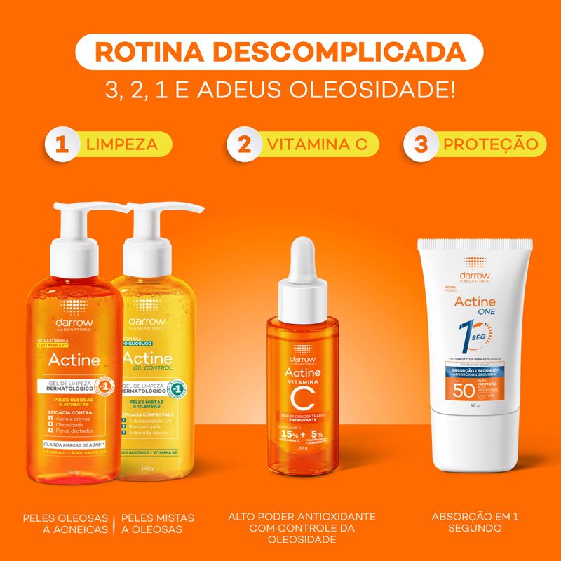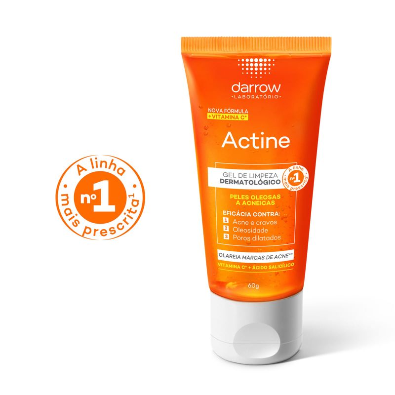 O Darrow Actine Gel de Limpeza Facial 60g, Nº1 em prescrição dermatológica, é ideal para pele oleosa ou acneica. Com ácido salicílico e lactato de mentila, combate 86% da acne e 97% da oleosidade, desobstrui poros e reduz marcas em 4 semanas, oferecendo refrescância e purificação.