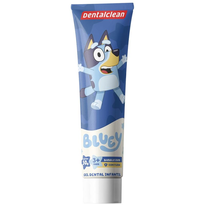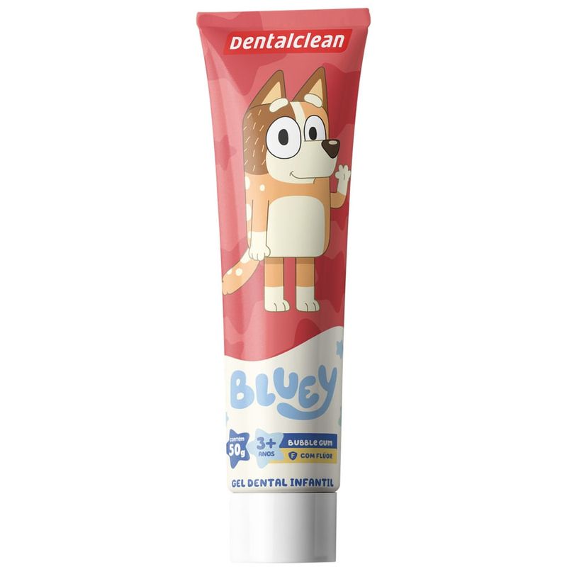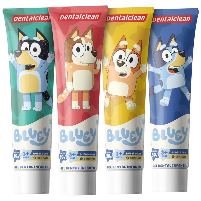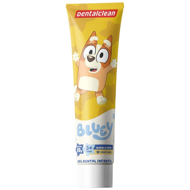 Gel Dental Infantil Dentalclean Bluey Sabor Morango Com Flúor 50g O Gel Dental Infantil Dentalclean Bluey une a alta proteção contra cáries com a diversão da cachorrinha Bluey e sua turma. Desenvolvido especialmente para crianças a partir de 3 anos, ele possui um delicioso sabor de morango (bubble gum) que agrada ao paladar infantil, facilitando a rotina de higiene bucal e tornando o momento da escovação muito mais prazeroso e aguardado pelos pequenos. Com uma fórmula segura e eficiente, o gel contém 1100ppm de flúor, a concentração recomendada para fortalecer o esmalte dos dentes e combater a placa bacteriana. Além disso, os tubos são colecionáveis e apresentam 4 personagens diferentes da série, transformando o cuidado diário em uma brincadeira lúdica. Principais Benefícios Proteção Anticáries: Contém 1100ppm de flúor, ideal para manter o sorriso forte e saudável. Sabor Irresistível: Delicioso sabor morango que incentiva o hábito da escovação. Personagens Colecionáveis: Disponível em 4 versões de tubos com a turma da Bluey (enviados de forma sortida). Momento Divertido: Estímulo lúdico que ajuda na transição para a autonomia da higiene bucal. Modo de Uso Aplique uma pequena quantidade de gel dental (tamanho de uma ervilha) sobre as cerdas da escova. Escove os dentes da criança de forma suave, realizando movimentos circulares e de vai e vem. Certifique-se de que a criança não engula o produto e enxágue bem após o uso. Informações Importantes sobre o Envio • Produto Sortido: O anúncio corresponde a 1 unidade de gel dental. • Lacre de Fábrica: Os tubos vêm em caixas lacradas e não possuem separação por personagem/cor no estoque. • Seleção: Por esse motivo, não é possível escolher o personagem ou a cor do tubo no momento do envio. Precauções Recomendado para crianças a partir de 3 anos. Deve ser aplicado por um adulto ou sob sua supervisão. Mantenha o produto fora do alcance de crianças quando não estiver em uso.