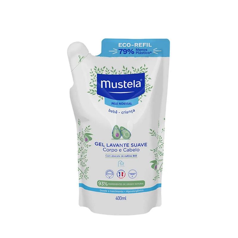 Refil Gel Lavante Suave Mustela Corpo e Cabelo 400ml O que é? O Refil Gel Lavante Suave Mustela 400ml é a versão sustentável do clássico gel lavante para bebês e crianças, ideal para higiene diária do rosto, corpo e cabelo desde o nascimento. Com 93% de ingredientes naturais, ele respeita a delicadeza da pele infantil e agora vem em embalagem eco-friendly, com redução de 79% de plástico. Para que serve? Desenvolvido para a pele sensível dos pequenos, o Gel Lavante Suave limpa sem agredir, mantendo a hidratação natural da pele e protegendo o couro cabeludo. Pode ser usado desde os primeiros dias de vida e é indicado para todos os tipos de pele. Como funciona? Sua fórmula vegana e biodegradável contém: Vitamina B5: ação calmante e protetora; Tensoativos suaves: limpam sem ressecar; Extrato de abacate BIO: nutre e preserva a barreira cutânea. Como usar Corte a ponta do refil e despeje o conteúdo no frasco reutilizável Mustela de 500ml ou 750ml. Aplique o gel nas mãos e ensaboe delicadamente o rosto, corpo e cabelo do bebê. Enxágue com cuidado e seque suavemente com uma toalha macia, sem esfregar. Ingredientes Água; Glicerol; Cocamidopropil Betaína; Mirete Sulfato de Sódio; Cocoato de Glicerila PEG-7; Coco-glicosídeo; Diestearato de PEG-150; Caprilato de Glicerila; Diestearato de Etilenoglicol; Perfume; Ácido Cítrico; Pantenol; Sorbato de Potássio; Extrato de Abacate Benefícios Limpa suavemente rosto, corpo e cabelo 93% de ingredientes naturais Sem álcool, parabenos, ftalatos ou fenoxietanol Textura leve com fragrância delicada Mustela Fórmula vegana e hipoalergênica Seguro desde o nascimento Desenvolvido na França com 75 anos de pesquisa dermatológica Refil econômico e sustentável de 400ml Recomendado por pediatras e dermatologistas