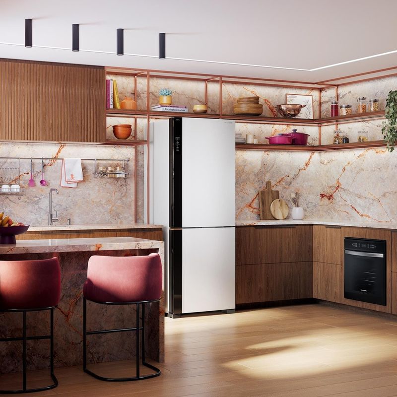 Geladeira Brastemp BRE66AB Smart Frost Free Inverse 500L Branca com IA Fresh Space A Geladeira Brastemp BRE66AB Smart Frost Free Inverse 500L é a escolha definitiva para quem busca o máximo em preservação e tecnologia. Com a maior capacidade do segmento, ela une inteligência artificial e design premium para garantir que seus alimentos fiquem frescos por muito mais tempo, adaptando-se perfeitamente ao seu estilo de vida. Equipada com a inovadora Tecnologia Xpert Inverter, esta geladeira oferece alta performance com até 25% de economia de energia. Seus sensores inteligentes mantêm a temperatura estável, conservando alimentos frescos por até 44% mais tempo, enquanto a gaveta Fresh Space preserva frutas e legumes por até 20 dias. Além disso, o acabamento moderno com detalhes em cobre eleva a estética da sua cozinha a um nível profissional. Descubra os diferenciais que tornam a Brastemp Smart Inverse 500L incomparável: Capacidade Gigante de 500 Litros: Espaço otimizado para atender grandes famílias e garantir organização total. Inteligência Artificial Integrada: Sensores que estabilizam a temperatura automaticamente para maior durabilidade dos alimentos. Freezer de 174L (O Maior da Categoria): Espaço de sobra para congelados com gavetas fáceis de organizar. Tecnologia Fresh Protein: Preservação avançada com IA que mantém o sabor e a suculência original de carnes. Painel Touch e Design Premium: Controle total das funções na porta e acabamento moderno com linhas retas sofisticadas. Não aceite menos do que a excelência. Invista na Brastemp BRE66AB Smart Inverse e transforme sua cozinha com a geladeira que combina alta economia, maior capacidade e tecnologia de ponta. Que tal aproveitar e completar sua cozinha com conjuntos de mesas e cadeiras, para transformar seu ambiente com conforto e estilo? Aproveite!
