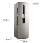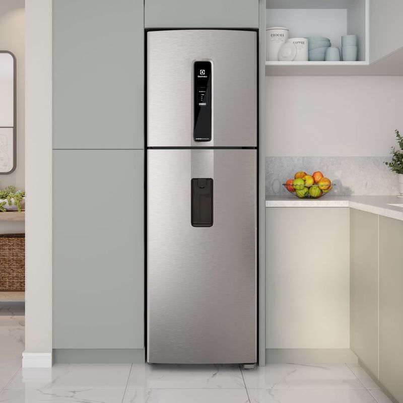 A Geladeira Electrolux Frost Free Inverter 409L Água na Porta com AutoSense Duplex InoxLook (IW46S) tem tecnologia AutoSense, que regula automaticamente a temperatura do seu refrigerador com inteligência artificial. A temperatura mais estável ajuda a prolongar a vida dos alimentos por até 30%1 mais tempo. Ainda para evitar o desperdício de alimentos, a gaveta HortiNatura foi pensada para cuidar especialmente das hortaliças. Ela possui uma vedação especial que evita o contato direto dos alimentos com a temperatura interna da geladeira, preservando o frescor de frutas e vegetais por até 2x² mais tempo. A Geladeira Electrolux Frost Free (IW46S) também foi pensada para trazer mais praticidade. Na organização, o sistema FastAdapt tem prateleiras deslizantes que podem ser configuradas de diversas formas para armazenar alimentos de diferentes tamanhos e formatos. Para facilitar o dia a dia, o espaço Chill Room gela mais rápido as bebidas e as comidas sem precisar colocar no freezer. Este modelo ainda tem luz de LED, que ajuda a ver dentro da geladeira e tem baixo consumo de energia, Ice Tray, para guardar gelo e ter suas bebidas sempre frescas, e bandeja de ovos com capacidade para 12 unidades. Sua experiência pode ficar ainda mais completa com as soluções para deixar sua geladeira mais higiênica. O filtro TasteGuard elimina até 9x³ mais rápido os maus odores causados por bactérias. Já o Extra Fresh absorve até 90%4 do gás etileno para retardar o amadurecimento de frutas e vegetais e mantê-los frescos por mais tempo. Ambos são vendidos separadamente.