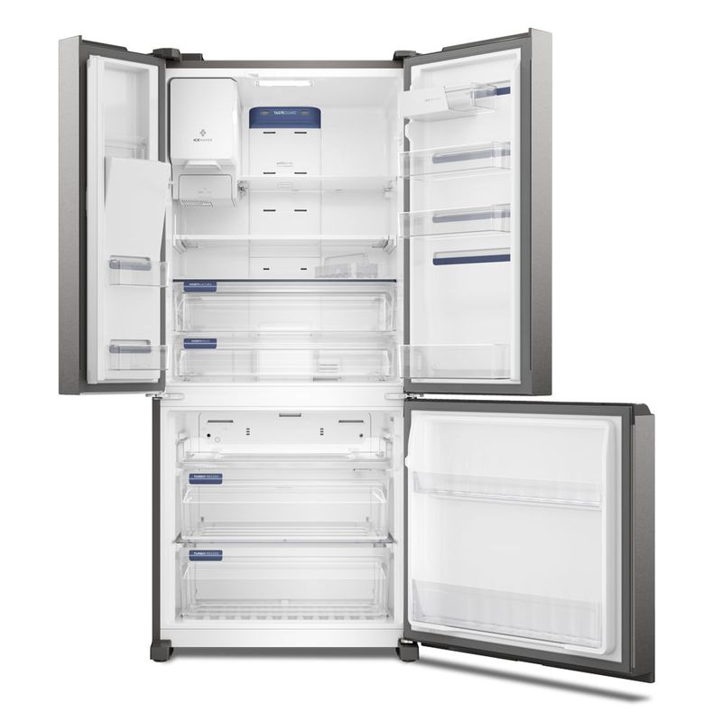 A Geladeira Electrolux Multidoor Efficient 540 L IM8IS possui três portas, para garantir mais espaço para armazenar e mais funções destinadas a manter o frescor dos alimentos por mais tempo, além de possuir dispenser de água e gelo direto na porta. Com a tecnologia exclusiva AutoSense, a Geladeira Electrolux Multidoor Efficient com AutoSense 540 L ajusta a temperatura automaticamente, garantindo uma melhor preservação dos alimentos por até 30% mais tempo. A Inteligência Artificial reconhece seus hábitos de consumo, identificando os momentos de maior uso e menor uso da geladeira, deixando-a mais fria ou estabilizando a temperatura.A Gaveta HortiNatura preserva o frescor de frutas e vegetais por até 2x mais tempo, evitando o desperdício de alimentos.E como a Tecnologia Inverter mantém a temperatura da geladeira mais estável, reduz o consumo de energia, além de garantir as condições ideais de preservação dos alimentos.A Geladeira Electrolux Multidoor Efficient com AutoSense 540 L ainda conta com o TasteGuard, que elimina até 9x mais rápido os maus odores causados por bactérias, garantindo que sua geladeira permaneça sempre higiênica. E a Geladeira Electrolux Multidoor Efficient 540 L IM8IS ainda conta com dispenser de água e gelo, que possibilita ter água e gelo em cubos, filtrados para consumo imediato direto da porta da geladeira.É recomendado o uso de acessórios originais Electrolux.