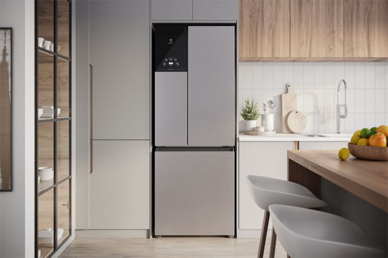 A Geladeira Electrolux Multidoor Efficient com AutoSense 590 L possui três portas para garantir mais espaço para armazenar e mais funções destinadas a manter o frescor dos alimentos por mais tempo. Com a tecnologia exclusiva AutoSense, a Geladeira Electrolux Multidoor Efficient com AutoSense 590 L ajusta a temperatura automaticamente, garantindo uma melhor preservação dos alimentos por até 30%² mais tempo. A Inteligência Artificial reconhece seus hábitos de consumo, identificando os momentos de maior uso e menor uso da geladeira, deixando-a mais fria ou estabilizando a temperatura. A Gaveta HortiNatura preserva o frescor de frutas e vegetais por até 2x³ mais tempo, evitando o desperdício de alimentos. E como a Tecnologia Inverter mantém a temperatura mais estável, reduz o consumo de energia em até 37%4, tornando-a uma das geladeiras brasileiras mais econômicas do segmento5, além de garantir as condições ideais de preservação dos alimentos. A Geladeira Electrolux Multidoor Efficient com AutoSense 590 L ainda conta com o TasteGuard, que elimina até 9x6 mais rápido os maus odores causados por bactérias, garantindo que sua geladeira permaneça sempre higiênica. Para facilitar a retirada de gelo, com o IceTwister é possível apenas girar a forma para que eles caiam no compartimento inferior, além da praticidade do sistema de abastecimento de água. ¹Portas e gabinete em Aço VCM (Vinil Coated Material). Esse produto não tem inox em sua composição. ²Resultados obtidos em testes realizados pela FURB (Universidade Regional de Blumenau) com morangos, cogumelos e leite. ³Resultados obtidos em testes realizados pela FURB (Universidade Regional de Blumenau) em morangos, cogumelos e alface. 4Economia dos modelos IM8, IM8S e IM8B, em relação ao mínimo para a classificação A do Inmetro. Consulte a porcentagem de redução de consumo de cada modelo em electrolux.com. 5Maior economia de energia do segmento de geladeiras multidoor fabricadas no Brasil, conforme tabela de eficiência energética de 25/02/2022 PBE (Programa Brasileiro de Etiquetagem). 6Comparado ao uso do bicarbonato de sódio, segundo procedimento interno testado no DM90X.