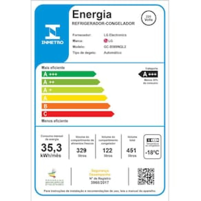 Conectividade Inteligente Com a tecnologia Wi-Fi e o aplicativo LG ThinQ®, você tem controle total sobre sua geladeira de qualquer lugar. Monitore o funcionamento, ajuste configurações e receba alertas diretamente no seu dispositivo móvel, garantindo praticidade e conveniência em sua rotina. Resfriamento Avançado O DoorCooling+ proporciona um resfriamento rápido e uniforme, inclusive na porta, mantendo seus alimentos frescos por mais tempo. Já com o Linear Cooling, a temperatura interna é mantida estável, reduzindo variações mínimas de apenas 0,5°C, garantindo a preservação ideal dos seus alimentos. Eficiência Energética Equipado com o Compressor Smart Inverter, este refrigerador oferece maior economia de energia, silêncio e durabilidade. Com 451 Litros de capacidade, sua classificação energética A+++, você economiza na conta de energia enquanto mantém seus alimentos perfeitamente refrigerados. Além disso, o compressor possui garantia de 10 anos, proporcionando tranquilidade por muito mais tempo. Organização e Conservação O sistema Multi Air Flow distribui o ar de maneira uniforme em todas as áreas da geladeira, garantindo uma temperatura consistente em cada prateleira e com a gaveta dedicada para frutas e vegetais, seus alimentos frescos são conservados por muito mais tempo, mantendo sabor e consistência.